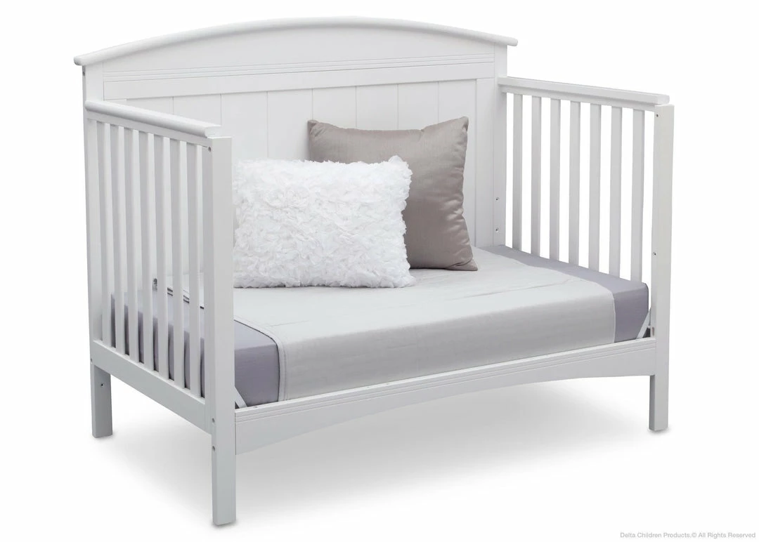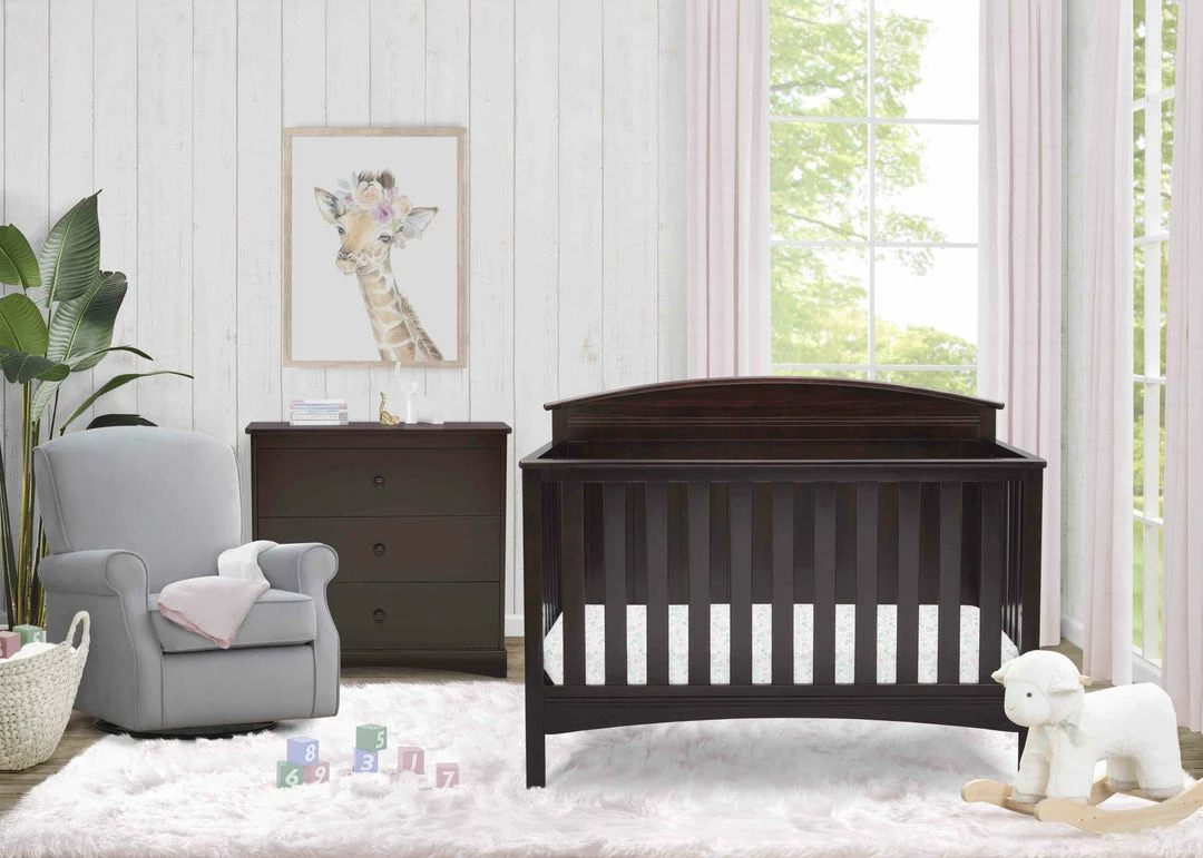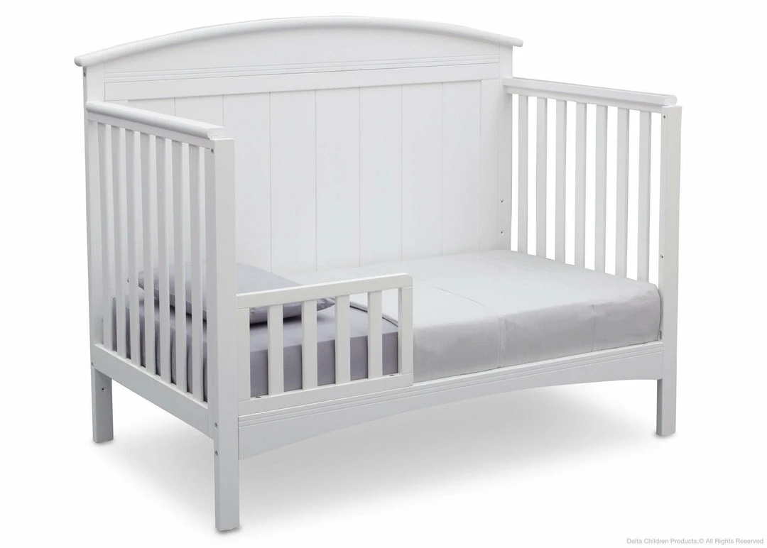 Perfect for traditional and modern nurseries alike, the Archer 4-in-1 Crib from Delta Children is remarkably versatile. You’ll love the character it adds to your baby’s space with its solid, gently arched headboard and airy slats. Designed to Delta Children’s standards of quality, design and longevity, the Archer 4-in-1 Crib is JPMA certified to ensure your child’s safety, plus adapts from a crib to a toddler bed, daybed and full size bed to provide a secure sleep environment for years to come (Toddler Guardrail and Full Size Bed Rails sold separately).