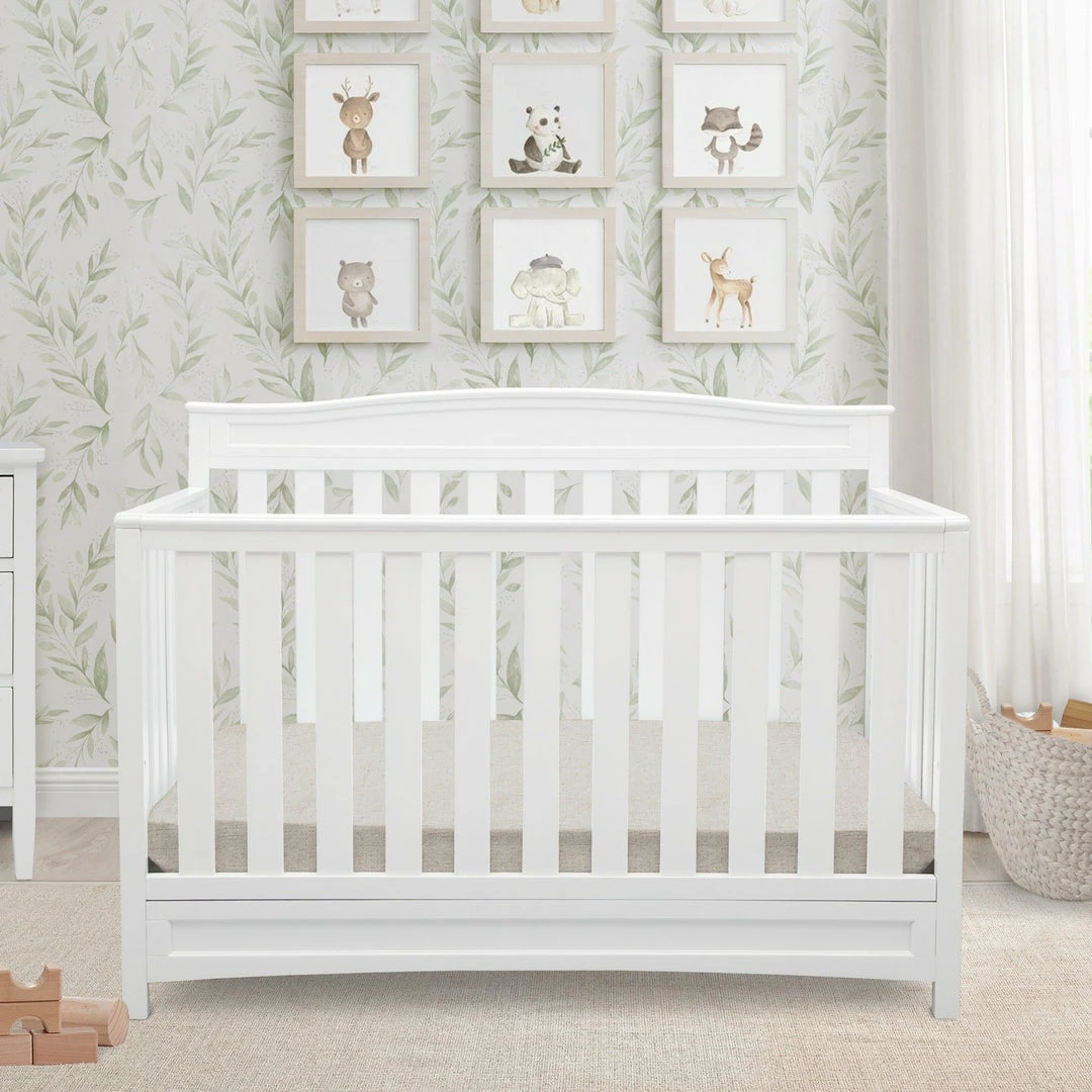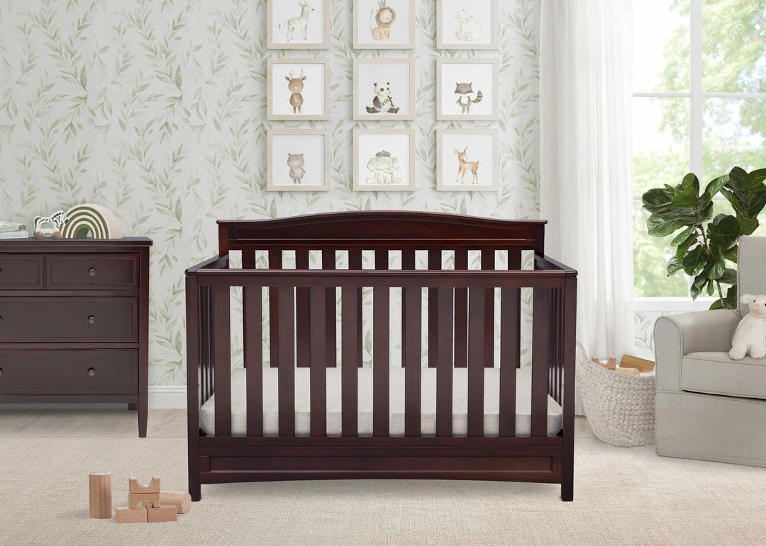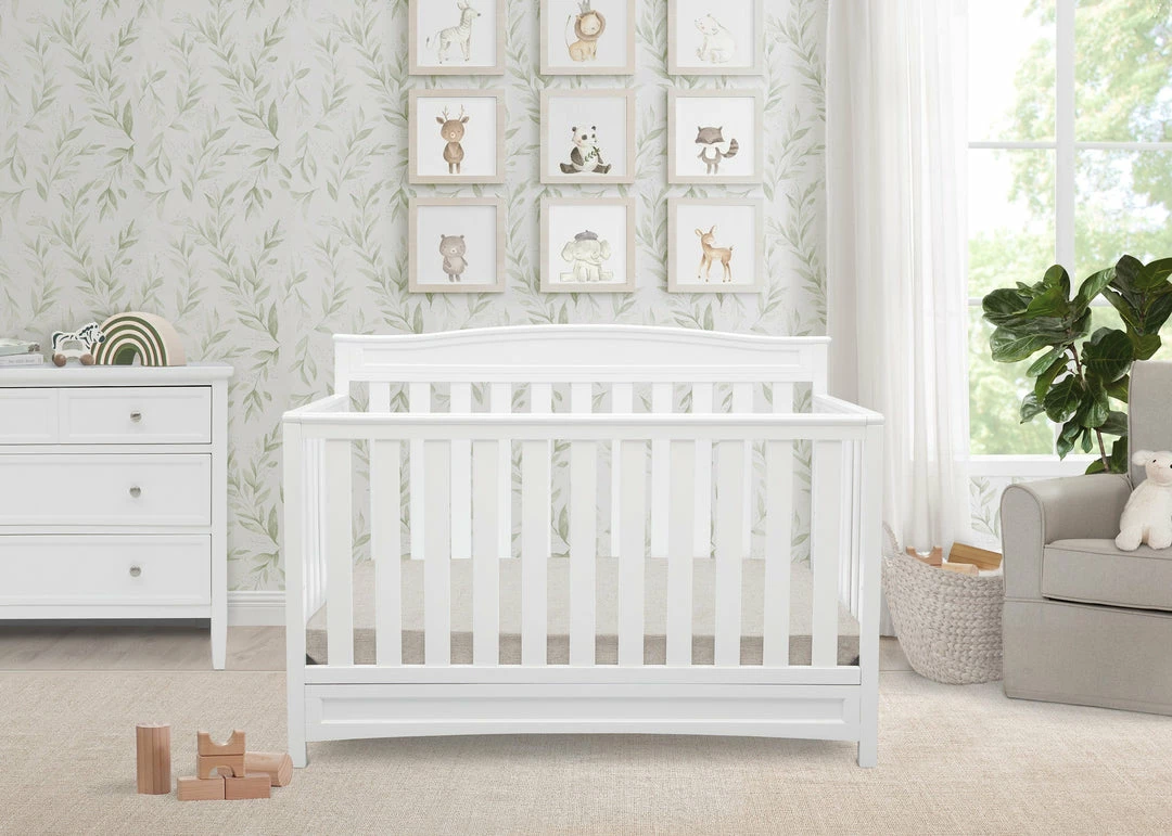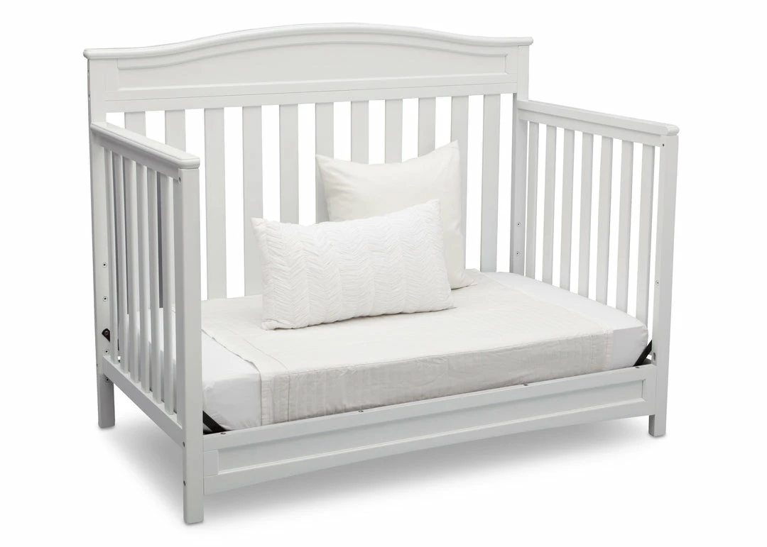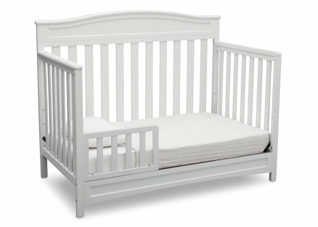 Durable, stable and stylish, the Emery 4-in-1 Convertible Crib from Delta Children will charm for years to come. Converting from a multi-positional baby crib to a toddler bed, daybed and full size bed, it’s designed to be a part of your little one’s life from infancy to adulthood. Featuring a slightly curved headboard and airy slats, this beautifully crafted crib is an affordable investment for your child’s future.