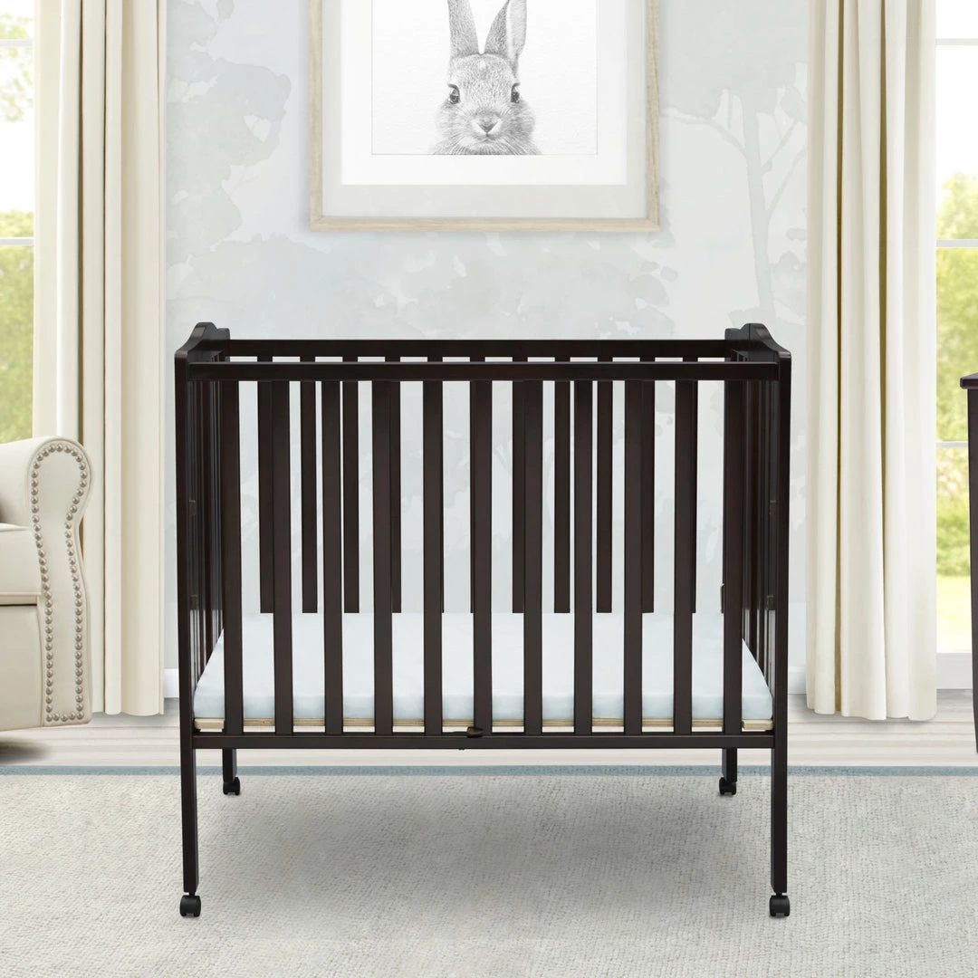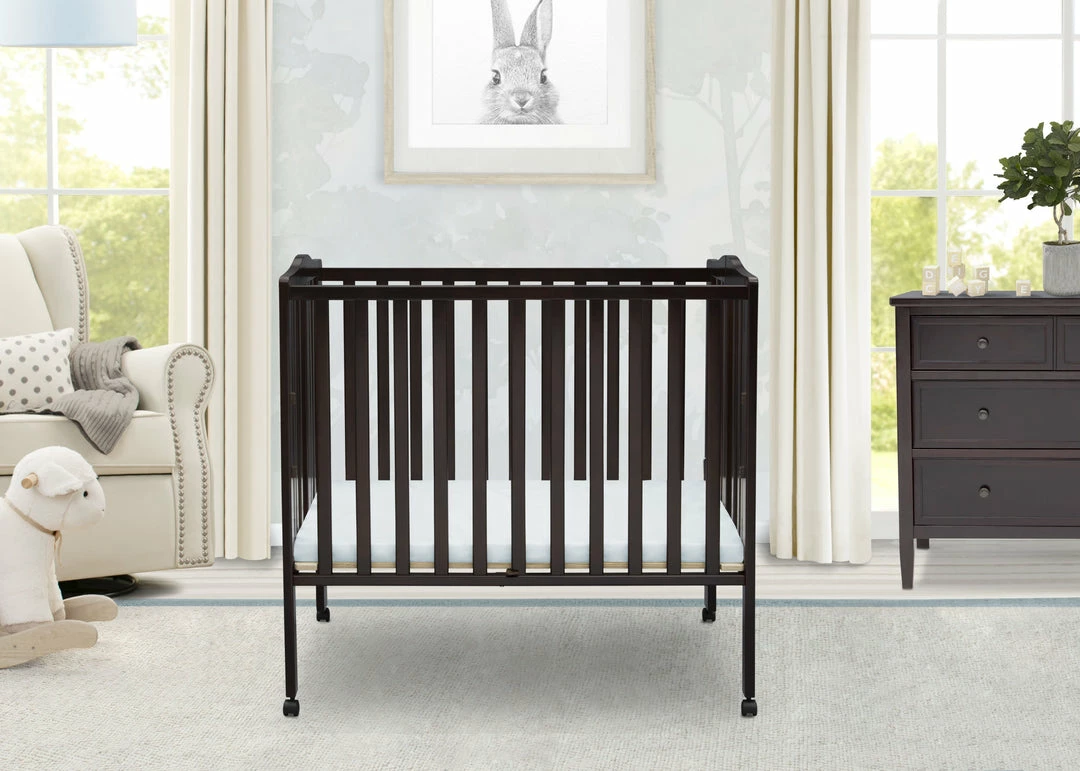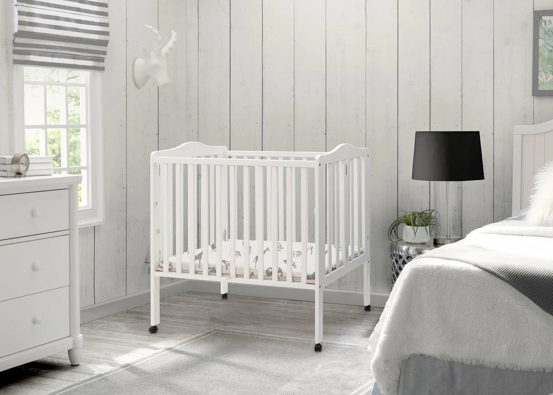 Great for small spaces or as a travel crib, the Portable Folding Crib with Mattress from Delta Children is well built and versatile. Its rolling casters allow for easy movement throughout the home, so you can keep your baby nearby at all times. And, when you’re on the go, it’s easier than ever to provide a safe and comfy sleep space for your little one. Made from durable wood, it easily folds up, making it perfect for transport. Designed for convenience, the Portable Folding Crib with Mattress from Delta Children includes everything needed for a good night’s sleep.