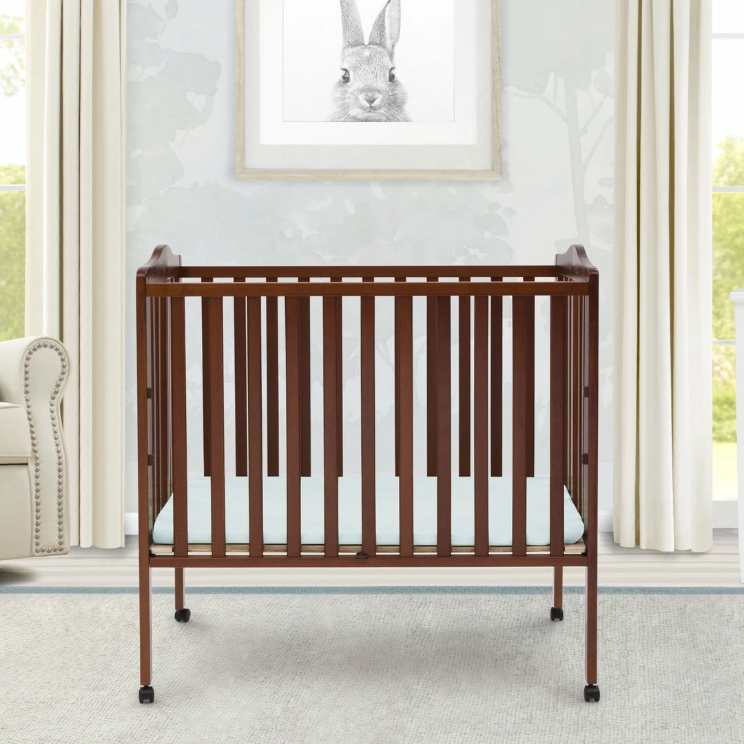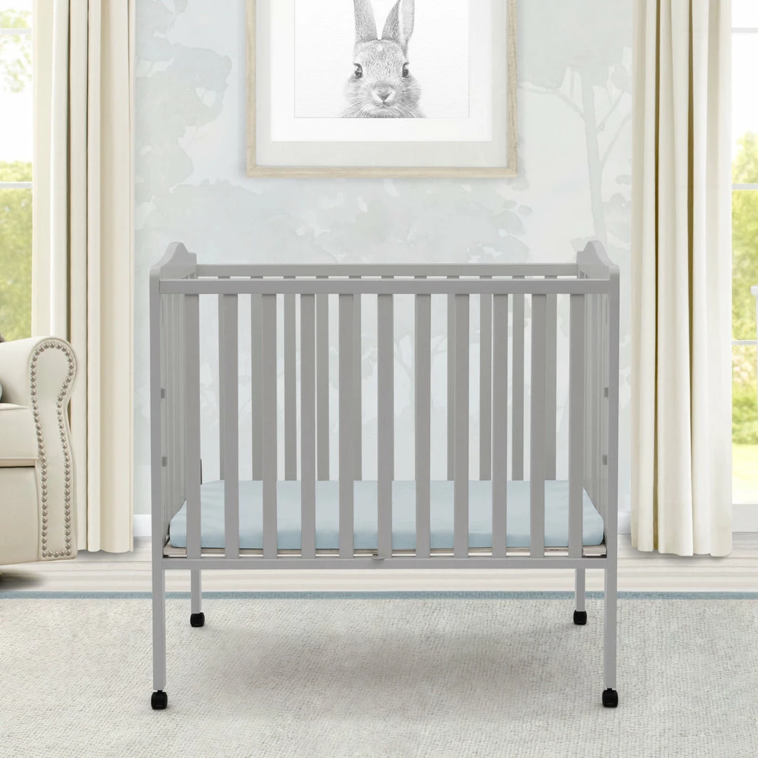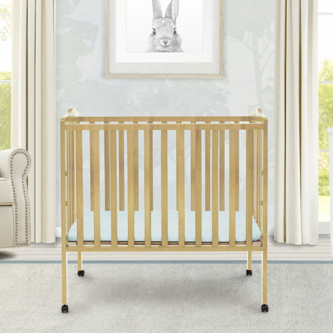 Great for small spaces or as a travel crib, the Portable Folding Crib with Mattress from Delta Children is well built and versatile. Its rolling casters allow for easy movement throughout the home, so you can keep your baby nearby at all times. And, when you’re on the go, it’s easier than ever to provide a safe and comfy sleep space for your little one. Made from durable wood, it easily folds up, making it perfect for transport. Designed for convenience, the Portable Folding Crib with Mattress from Delta Children includes everything needed for a good night’s sleep.