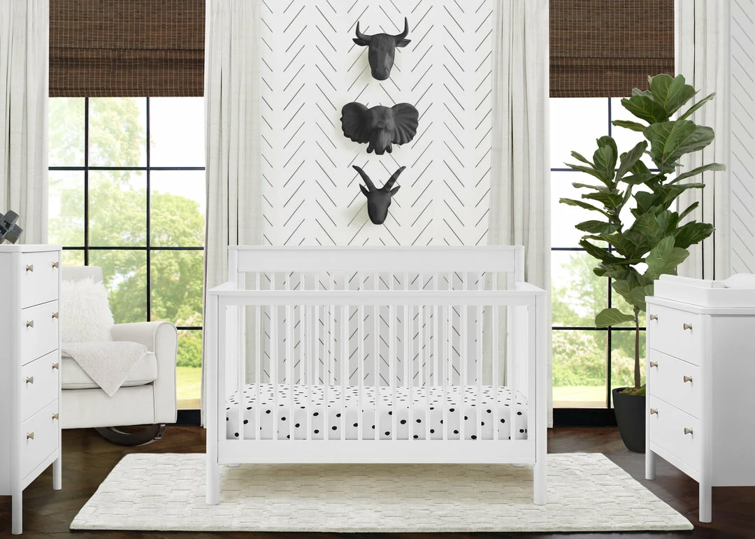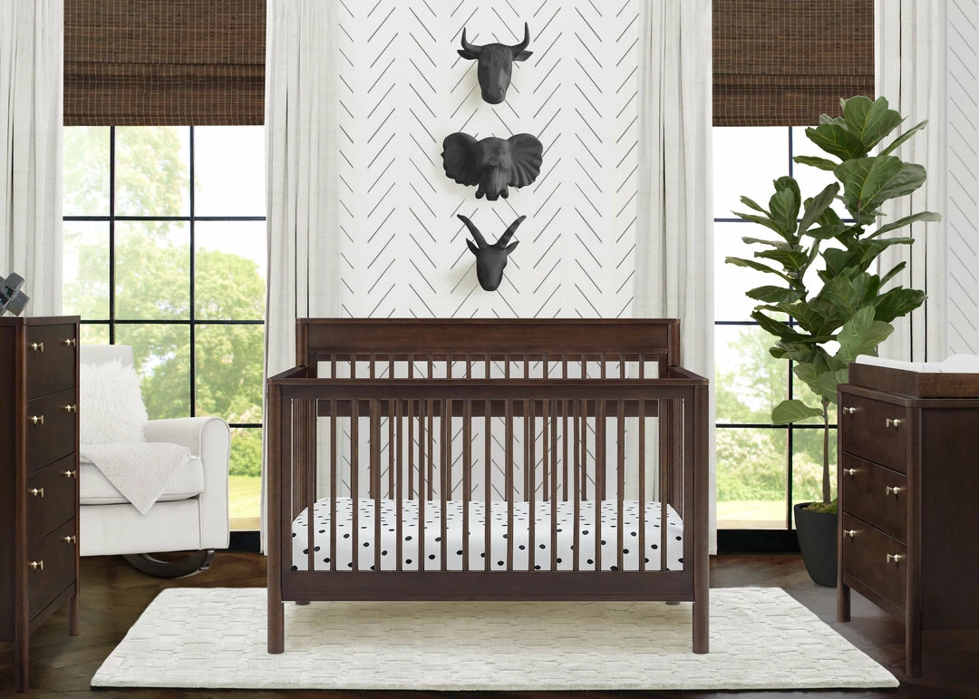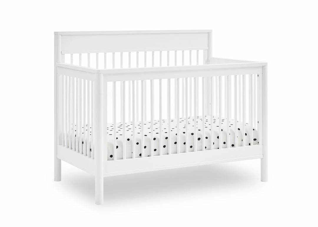 The Remy 6-in-1 Convertible Baby Crib by Delta Children will instantly elevate your nursery with its mid-century modern style. Clean lines, playful round spindles and cylindrical posts define this beautiful crib. Built to grow with your child, the Remy features an adjustable height mattress that can be lowered as baby begins to sit or stand, plus it converts from a crib to a toddler bed, daybed, sofa, and full size bed with and without footboard. Pair this crib with other pieces in the Remy Collection for a coordinated look.