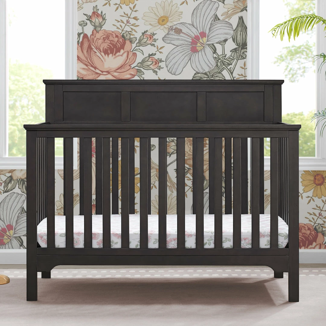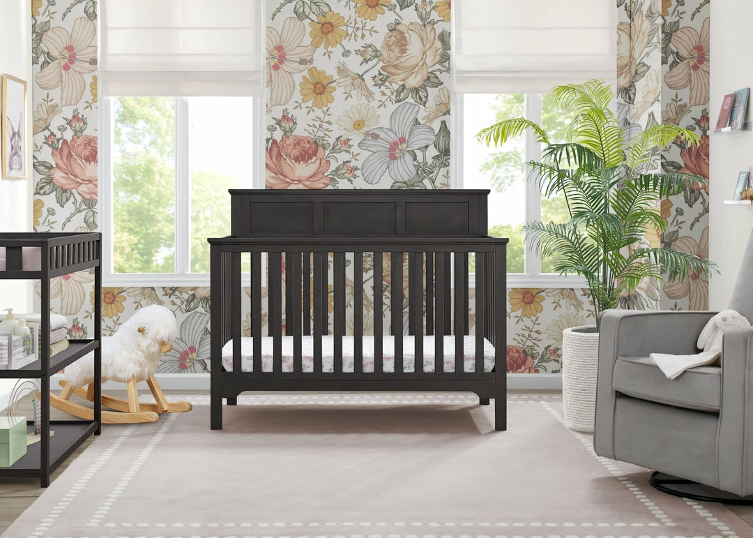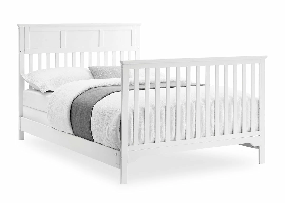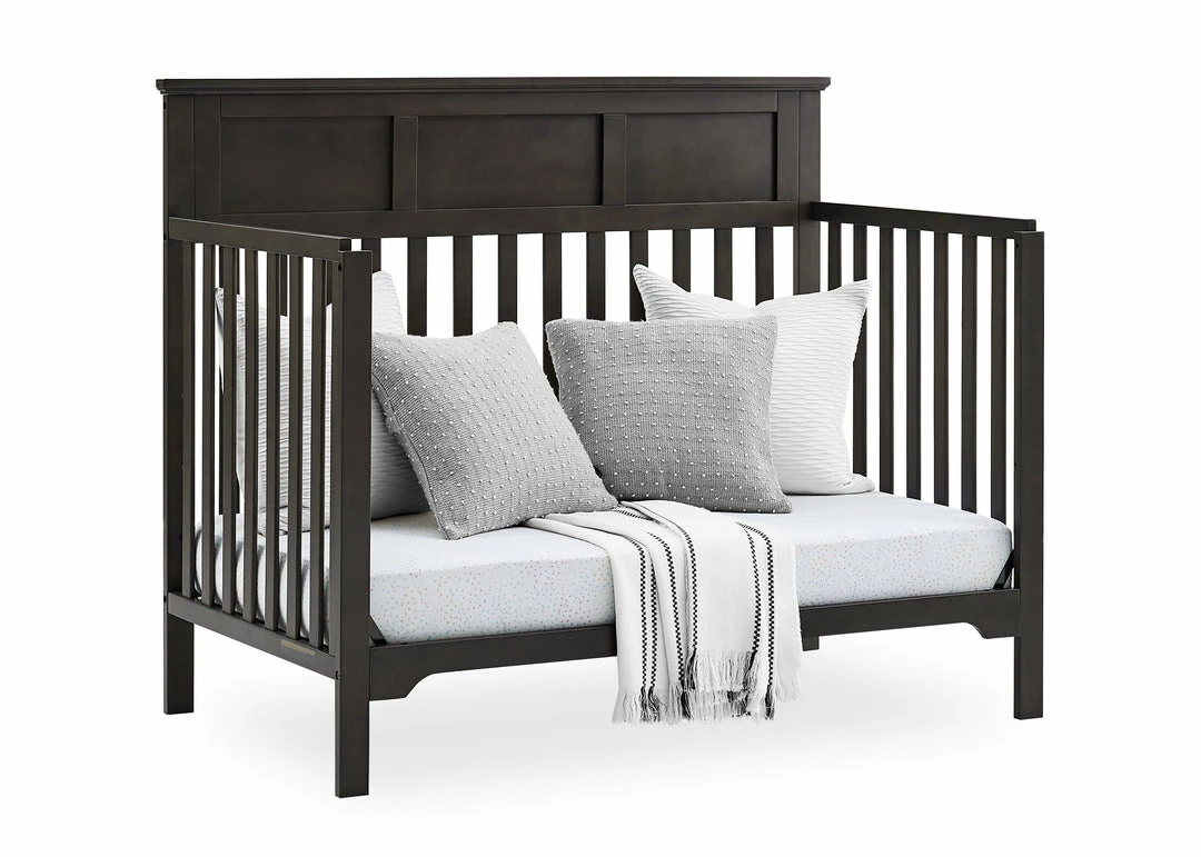 The Sweet Beginnings Hart Flat Top 6-in-1 Convertible Crib by Delta Children is designed to deliver stylish longevity. With detailed molding, this flat-top design is the perfect centerpiece for your nursery. It features three adjustable height levels that allow the crib to be lowered as your child grows, plus it converts from a crib, to a toddler bed, daybed, sofa, full size bed with headboard and footboard or a full size bed with headboard only (Daybed, Sofa Rail included; Toddler Guardrail #0094 and Full Size Bed Rails #0050 sold separately).