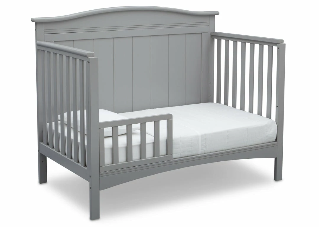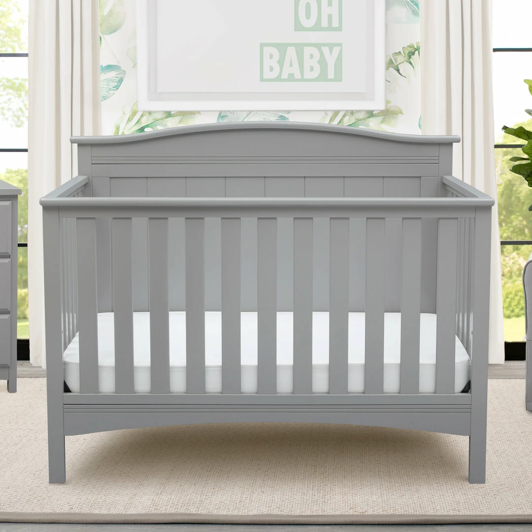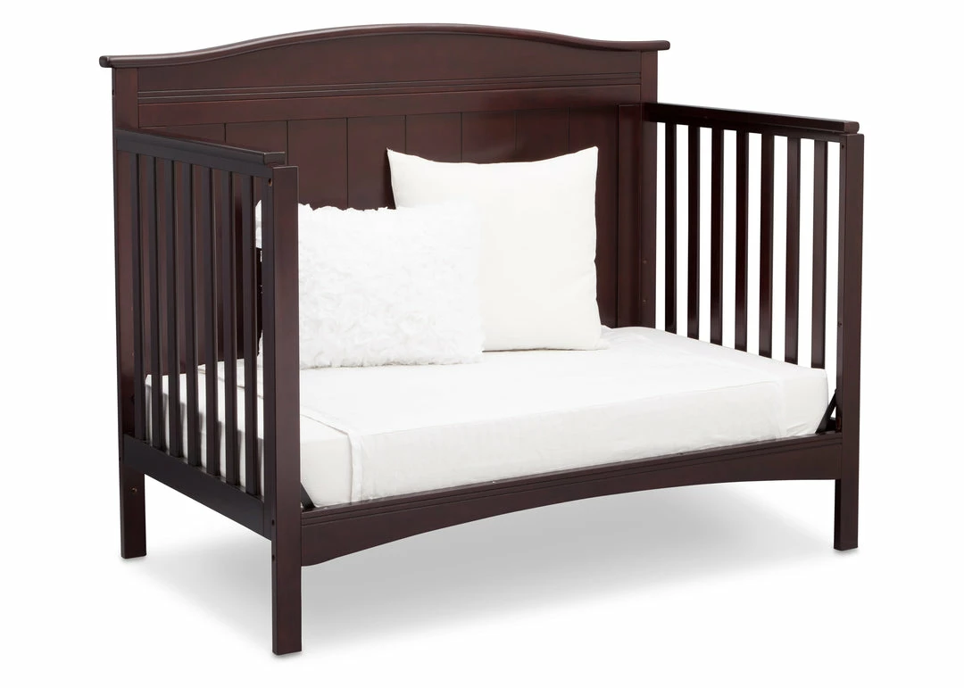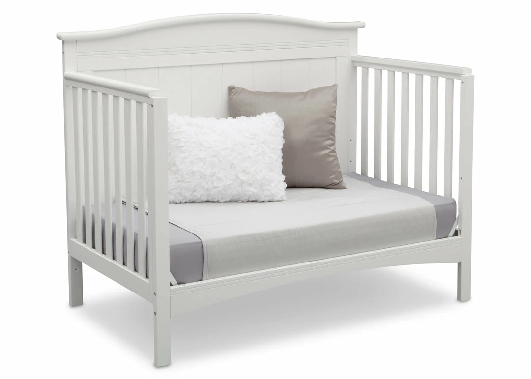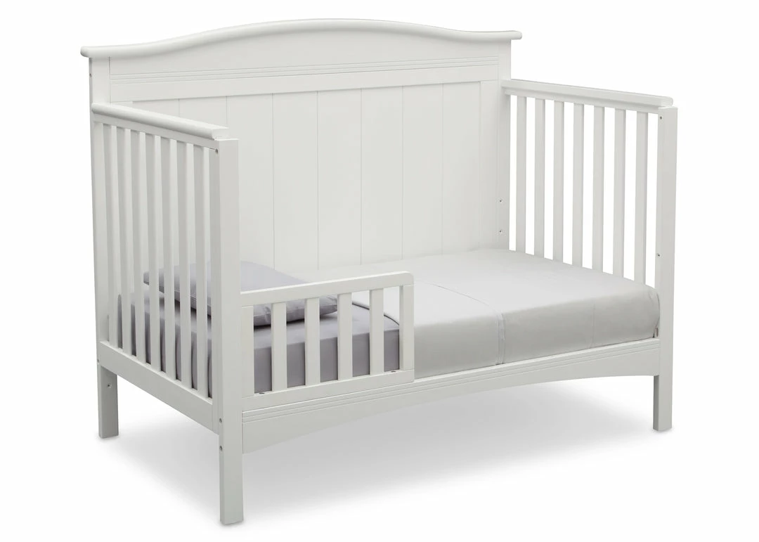 The Bennett 4-in-1 Crib from Delta Children will create a space that you and your baby will love to spend time in: classic, charming and above all, designed to effortlessly transition with your child as they grow. Featuring a graceful silhouette, the gentle curves on the headboard mix well with the planked panels below. Constructed of strong and sturdy wood, this long-lasting crib is outfitted with a three-position mattress height adjustment to accommodate your growing baby, plus it adapts from a crib to a toddler bed, daybed, and later to a full size bed (Toddler Guardrail and Full Size Bed Rails sold separately).