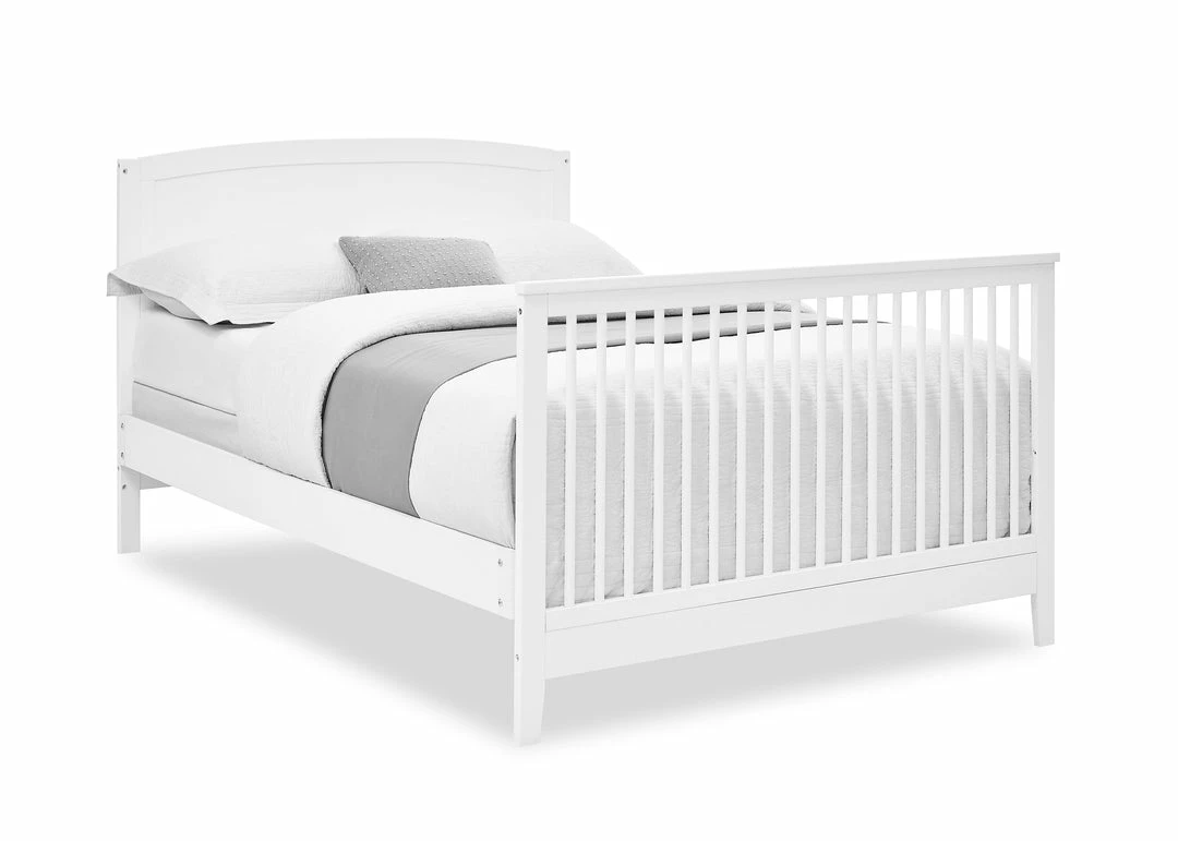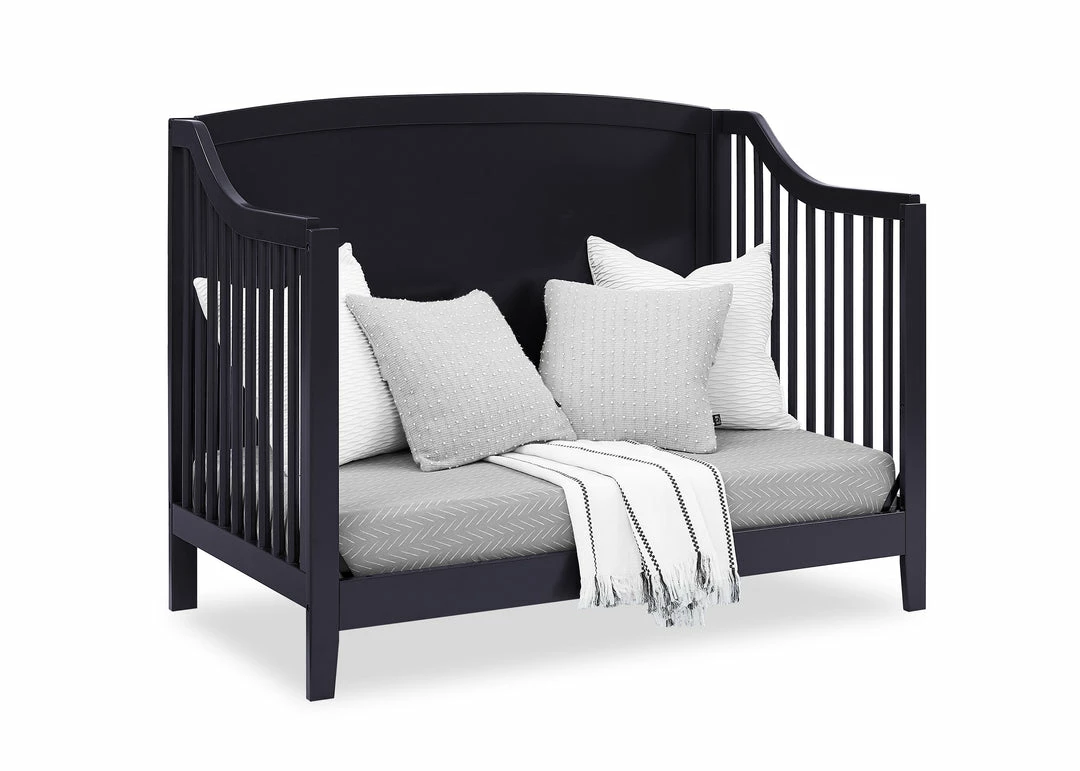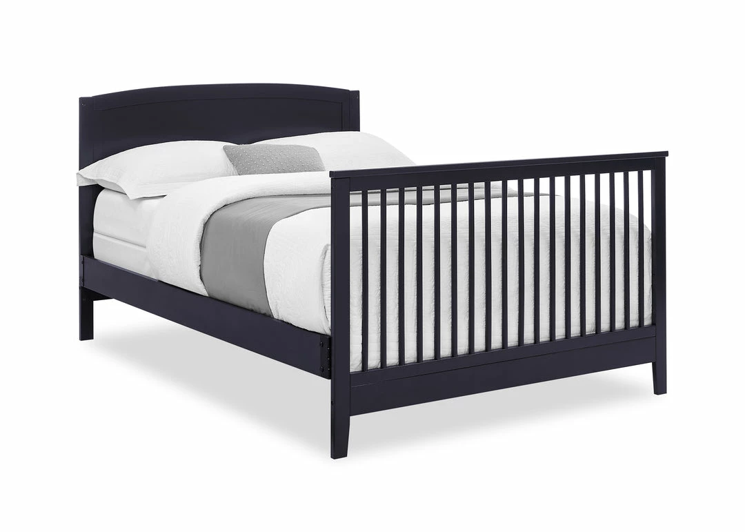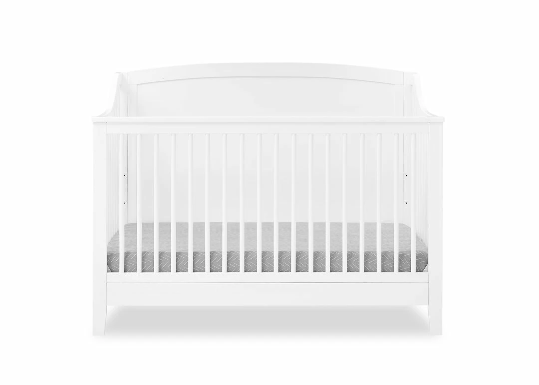 Bring your dream nursery to life with the Delta Children Campbell 6-in-1 Convertible Crib. A modern adaptation of a classic sleigh crib, it features timeless details like slight curves and a full panel headboard while the rounded spindles add a contemporary touch. Designed to adapt to your growing baby, the Campbell 6-in-1 Crib is equipped with an adjustable mattress support base that features three different height options—start at the highest setting for newborns and lower as your baby begin to sit or stand. Plus, once your child is ready for their big girl/boy bed, this crib converts into a toddler bed, daybed, sofa and full size bed with or without footboard (Daybed/Sofa rail included; Toddler Guardrail #W100725 and Full Size Bed Rails #0050 sold separately). This crib is available in Bianca White, Walnut Espresso or Midnight Grey and coordinates with other items in the Delta Children Campbell Nursery Collection.