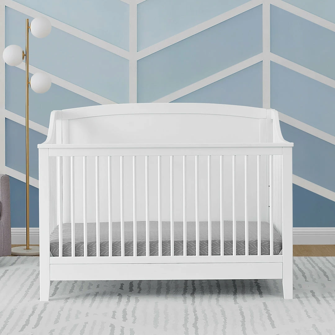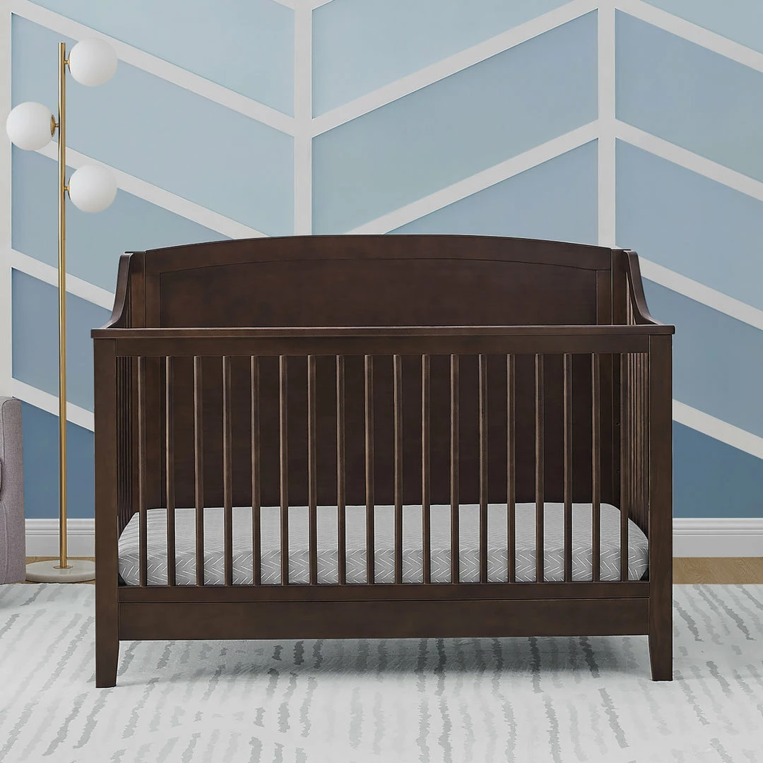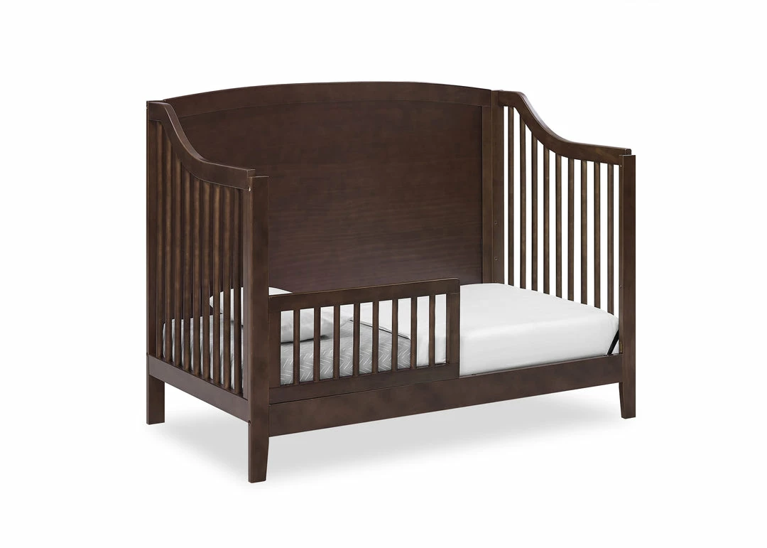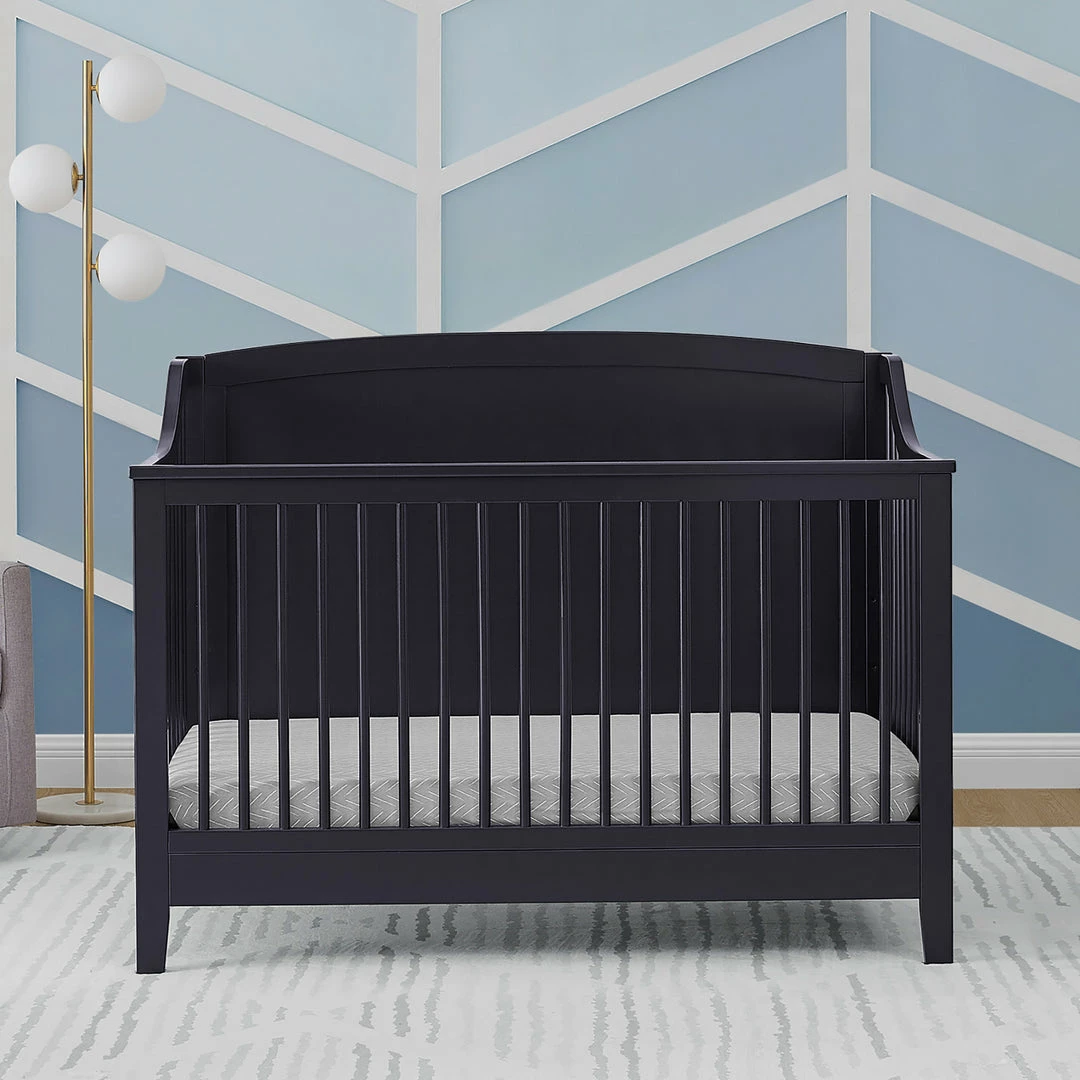 Bring your dream nursery to life with the Delta Children Campbell 6-in-1 Convertible Crib. A modern adaptation of a classic sleigh crib, it features timeless details like slight curves and a full panel headboard while the rounded spindles add a contemporary touch. Designed to adapt to your growing baby, the Campbell 6-in-1 Crib is equipped with an adjustable mattress support base that features three different height options—start at the highest setting for newborns and lower as your baby begin to sit or stand. Plus, once your child is ready for their big girl/boy bed, this crib converts into a toddler bed, daybed, sofa and full size bed with or without footboard (Daybed/Sofa rail included; Toddler Guardrail #W100725 and Full Size Bed Rails #0050 sold separately). This crib is available in Bianca White, Walnut Espresso or Midnight Grey and coordinates with other items in the Delta Children Campbell Nursery Collection.