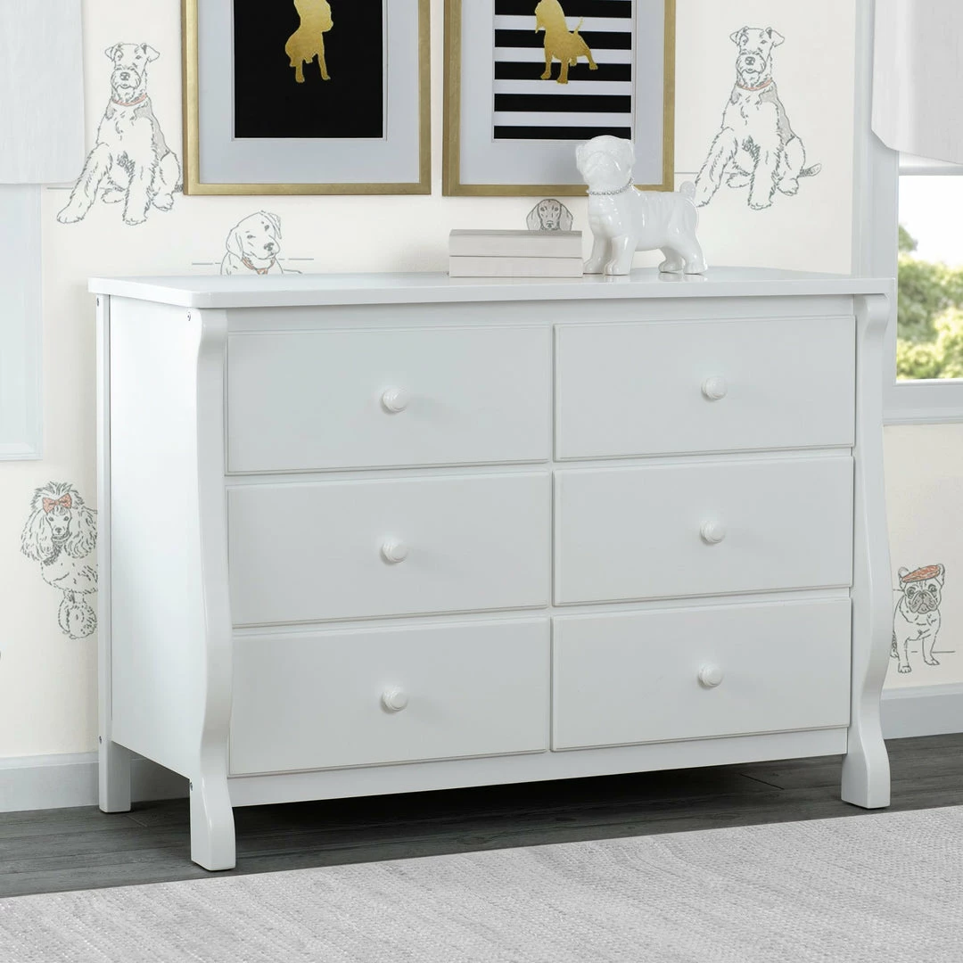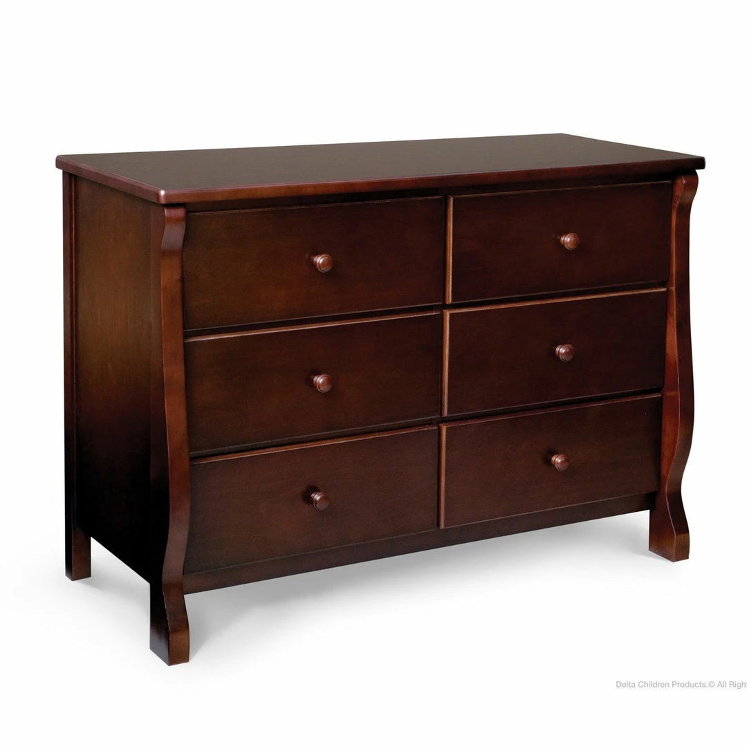 This Delta 6-Drawer Dresser is a gorgeous piece that combines simple, yet chic style with superb functionality. With a smooth surface top that can double as a bedside table, this versatile dresser has ample storage space that can serve from baby to adulthood. Spacious and made of sturdy construction, it comes with durable metal drawer glides for smooth drawer opening. Easy to assemble and easily fits within any decor. Complete your baby’s room with the Canton or Eclipse 4-in-1 Crib and Eclipse Changing Table.
