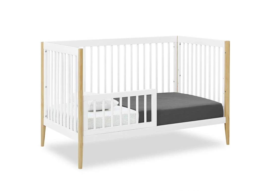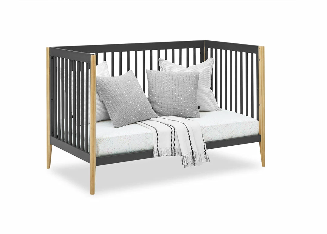 The Casey 6-in-1 Convertible Baby Crib by Delta Children will instantly elevate your nursery with its mid-century modern style. Clean lines, playful round spindles and cylindrical posts define this beautiful crib. Built to grow with your child, the Casey Crib features an adjustable height mattress that can be lowered as baby begins to sit or stand, plus it converts from a crib to a toddler bed, daybed, sofa, full size bed with headboard and footboard and full size bed with headboard only. Pair this crib with other pieces in the Casey Collection for a coordinated look.