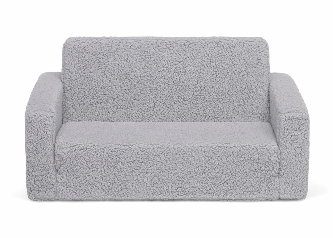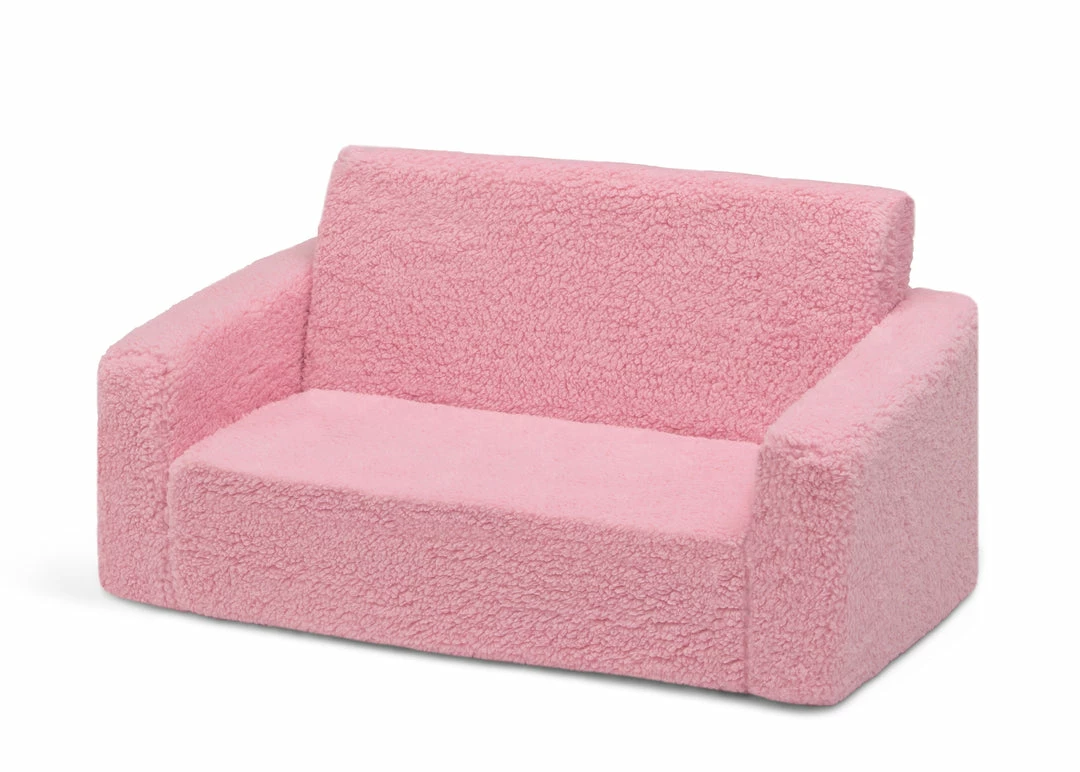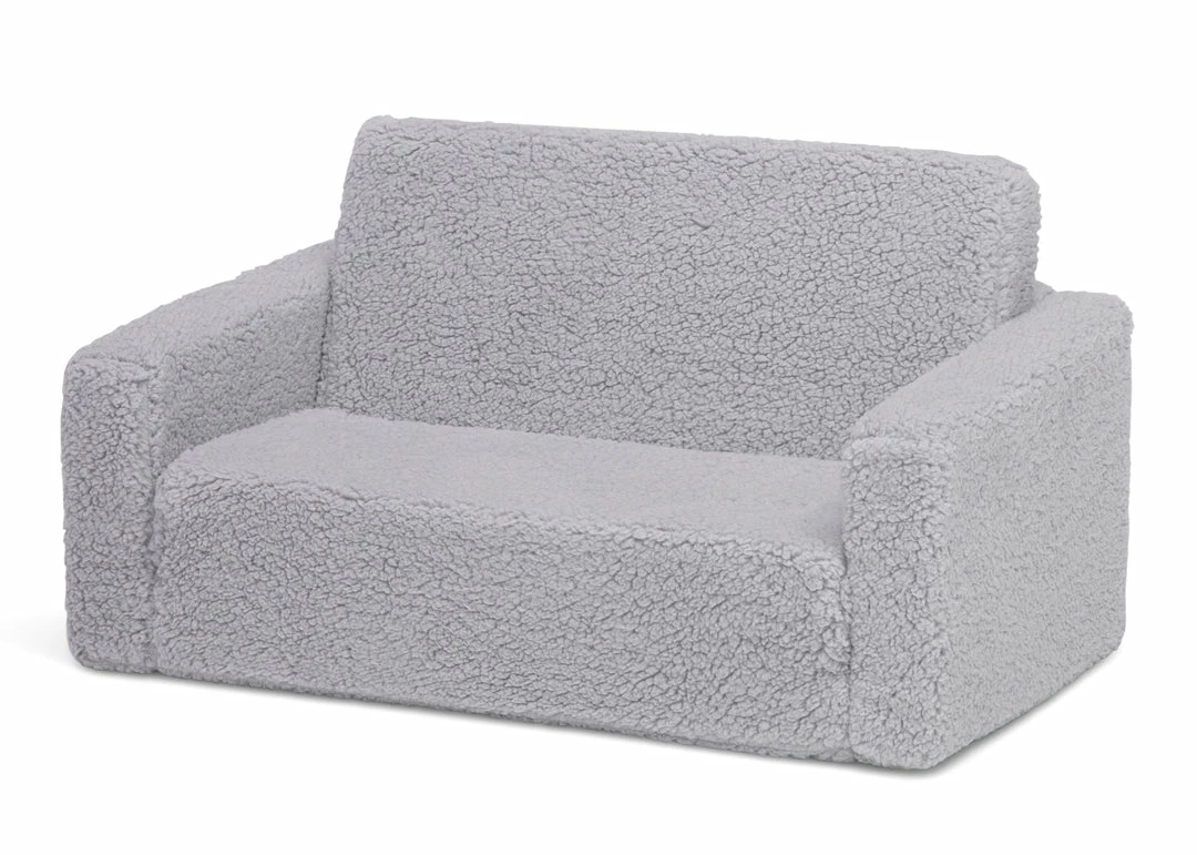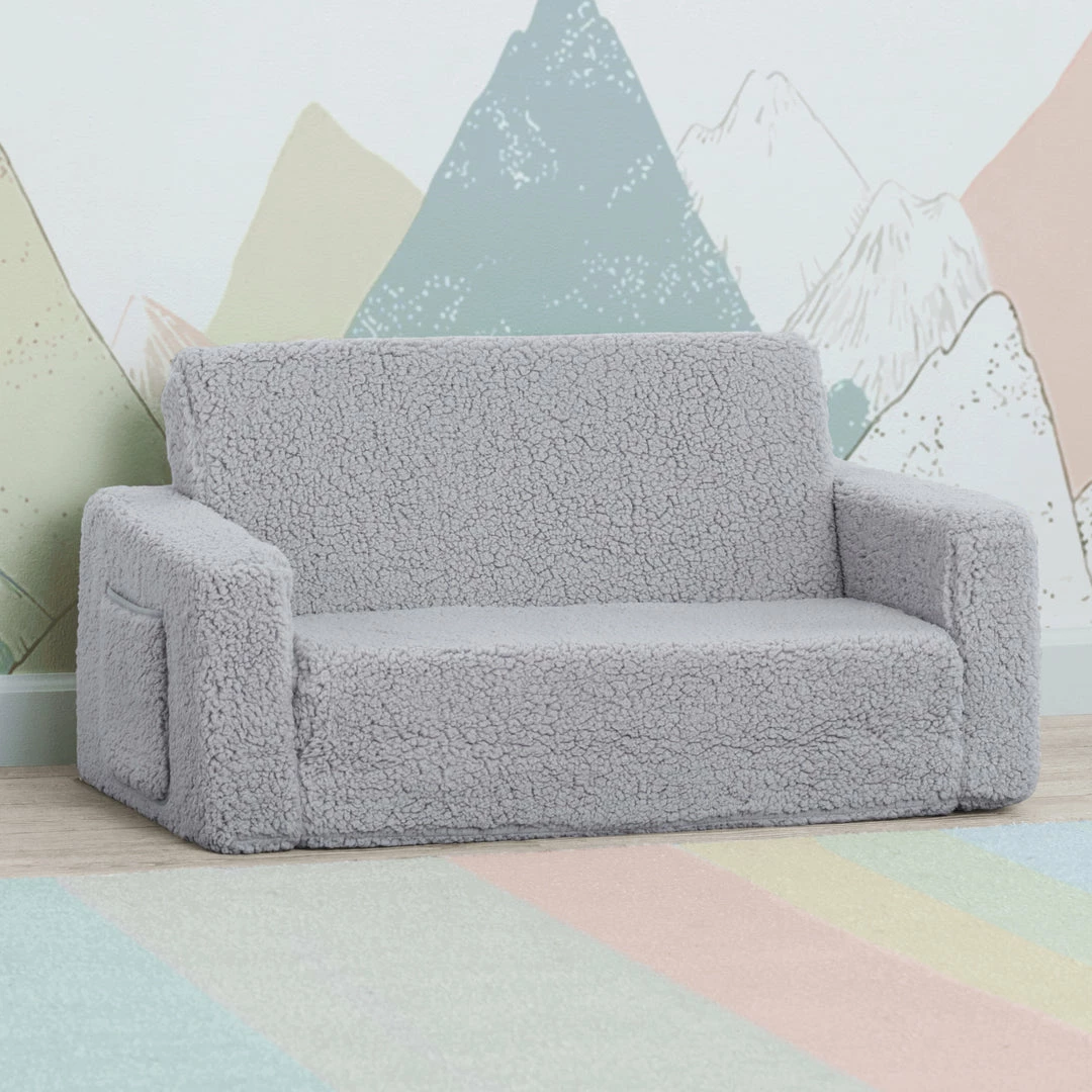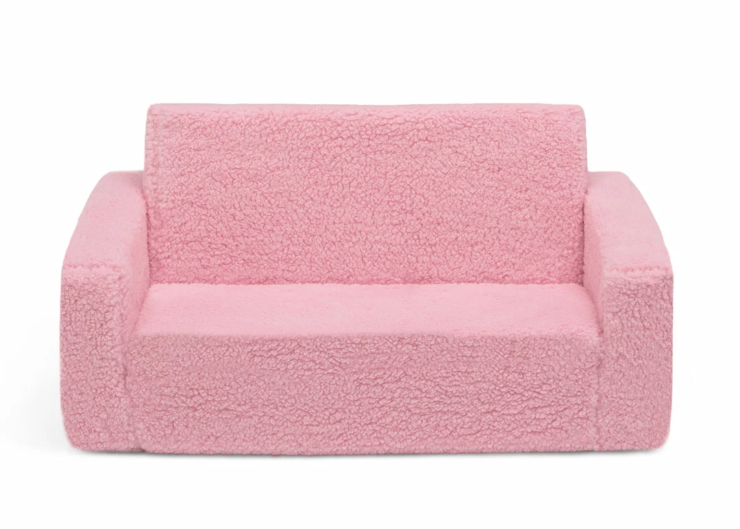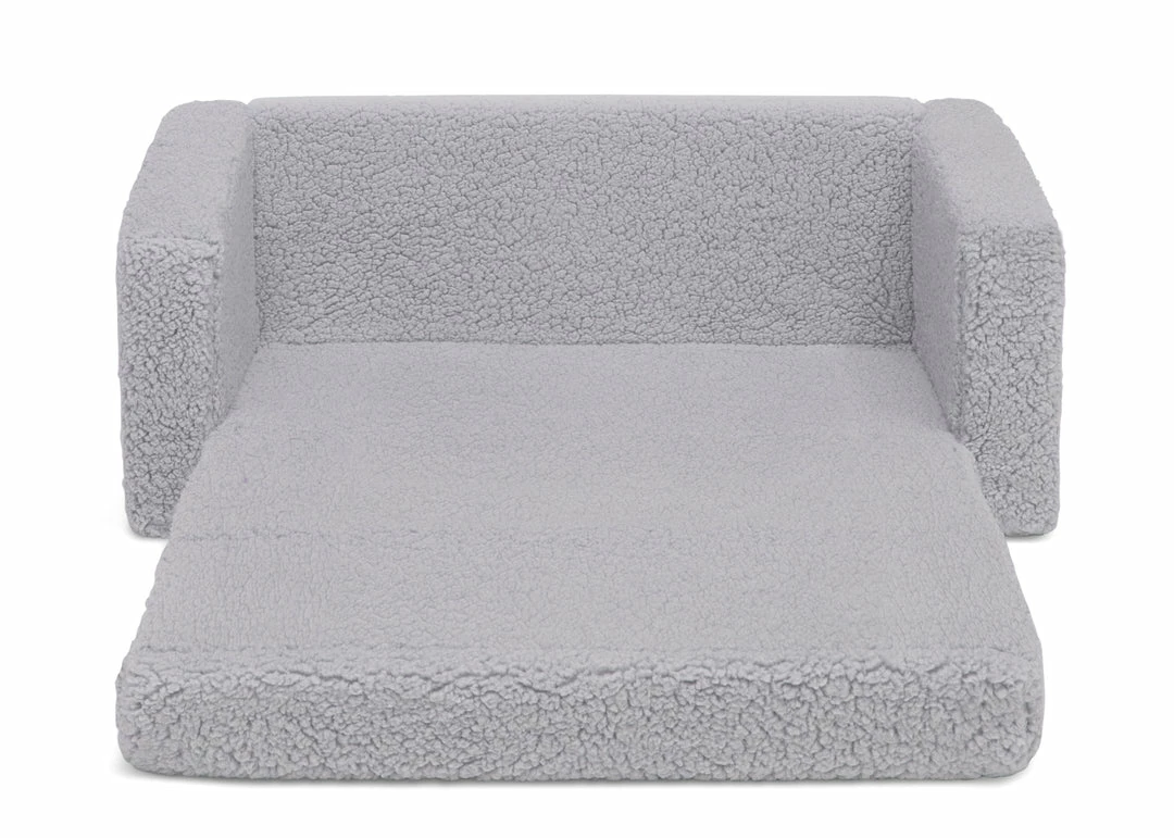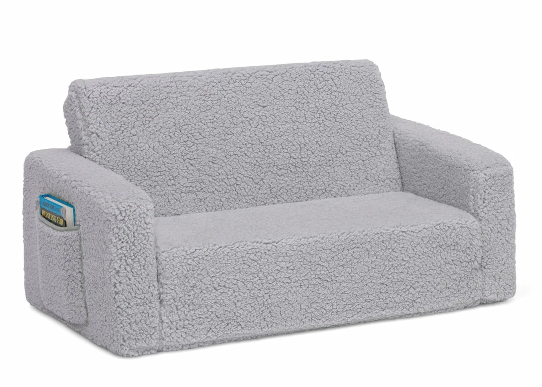 The Cozee Flip-Out Sherpa 2-in-1 Convertible Sofa to Lounger by Delta Children is a cozy couch by day, laid-back lounger by night. This convertible sofa easily flips open to reveal multiple ways for your child to relax–they’ll love to sit and read or watch their favorite movies on the sofa but when it’s time for a nap, this seat folds out into a comfy sleeper bed. Big enough to fit three small kids comfortably in sofa mode, it’s light enough to move around the house and is ideal for your children to share during playtime or sleepovers. The super-soft Sherpa slipcover with easy-to-reach side pocket creates the ultimate retreat for your little one. The supportive foam construction will keep its shape and provides all-day comfort. Designed to ship in a super-small box, this lightweight foam kids’ sofa and lounger may take up to 24 hours to fully expand once unboxed. Machine-washable slipcover zips off for easy cleaning. Recommended for ages 18 months+.