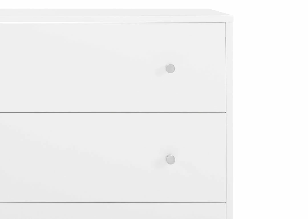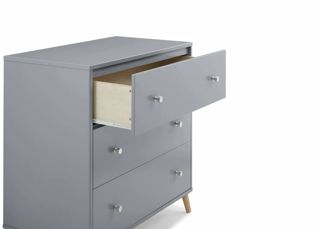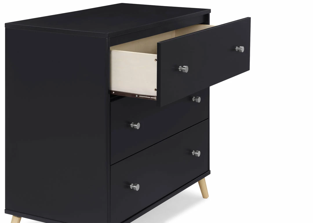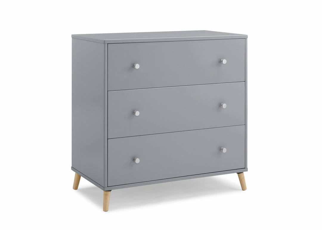 The Jordan 3 Drawer Dresser by Delta Children is a must-have storage unit for stylish parents and kids! Designed to elevate modern nurseries or bedrooms, it’s perfect accompaniment to your Jordan crib with its splayed feet and two-toned detailing. With three spacious drawers, this sturdy dresser provides a range of practical storage possibilities to suit all of your needs. Use it alone or attach the coordinating Changing Top #W100810 to create a secure and stylish changing table (Changing Top sold separately).
