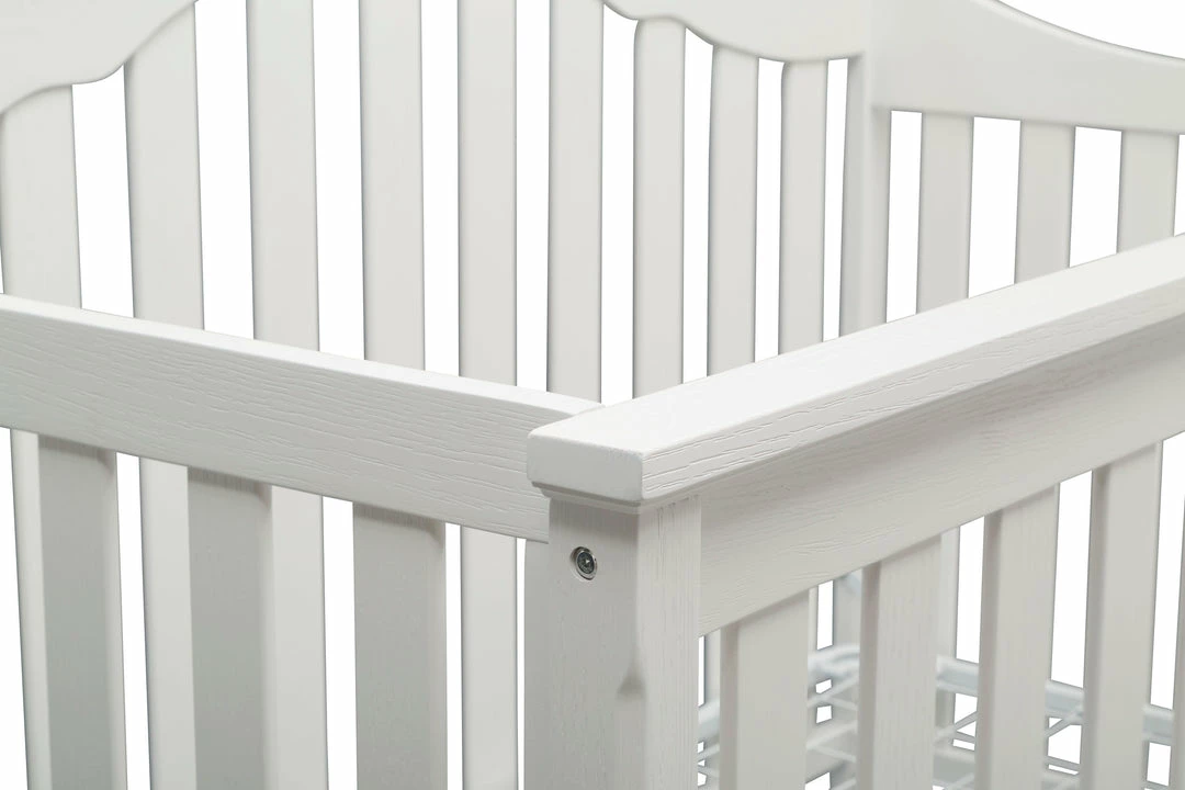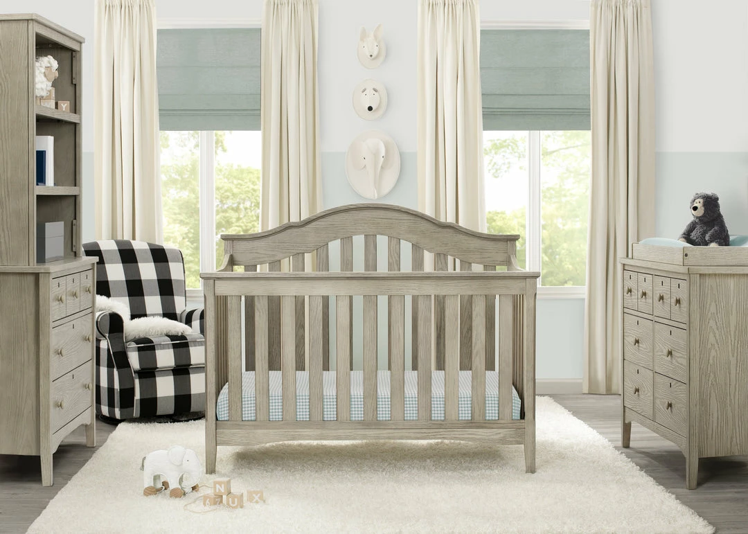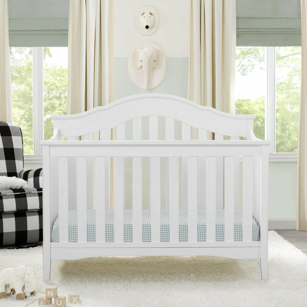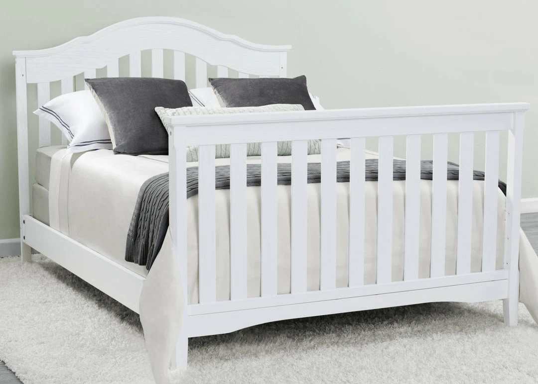 The elegant curves of the Farmhouse 6-in-1 Crib are brought to life with a lightly textured finish. A great option for your baby’s nursery, this convertible crib features a grow-with-me design that converts from a crib, to a toddler bed, daybed, full size bed and more. The only bed your little one will ever need, this versatile crib will take you from the nursery to high school, and all the years in between.