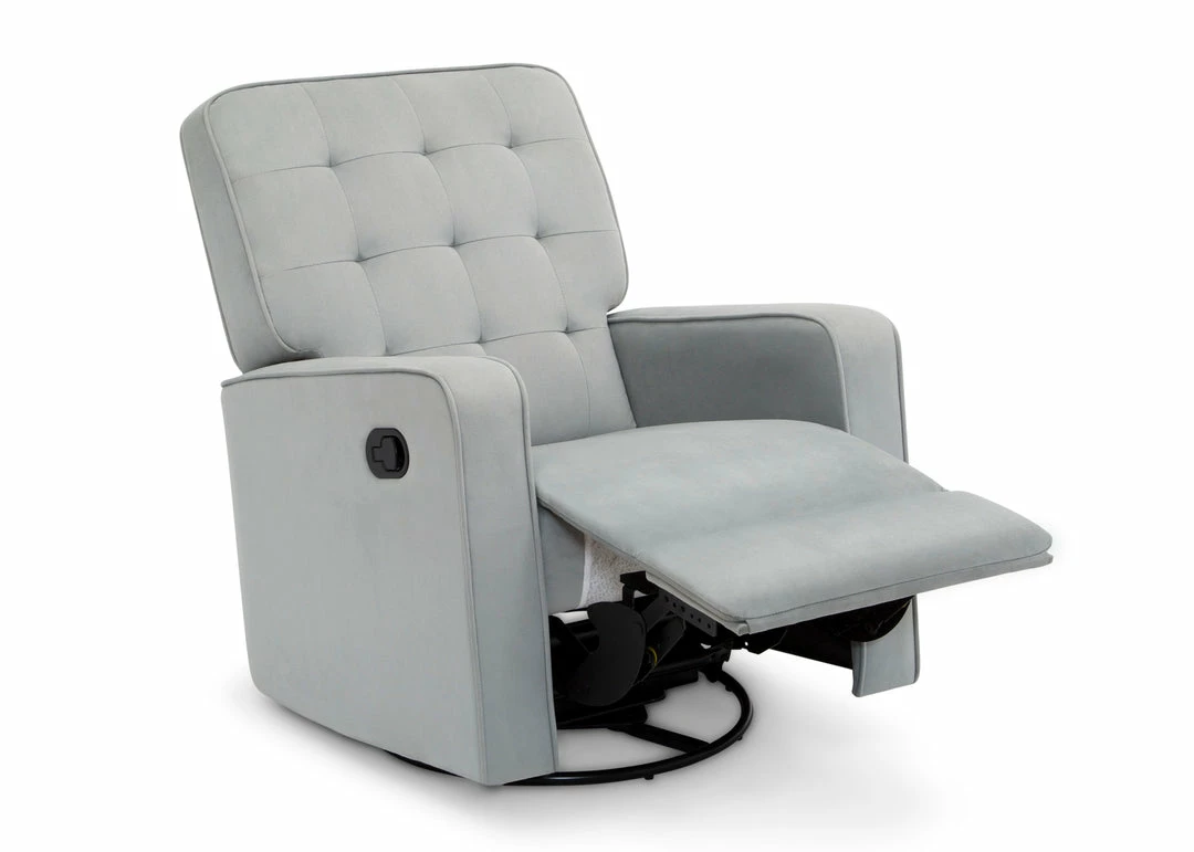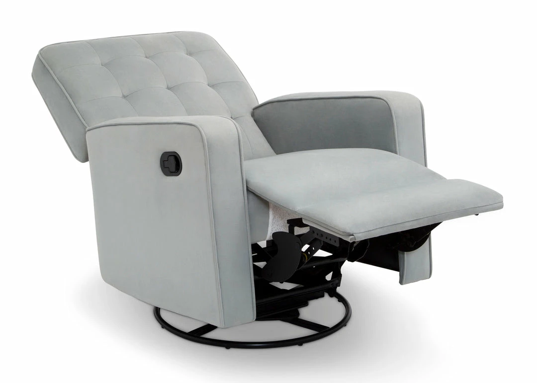 The Gavin reclining glider allows you and your baby to sit back, rock and relax with ease. A great spot for nursing, story time, or snuggles, it features a 360-degree swivel, gliding motion, and an easy-to-reach reclining mechanism that offers two recline positions.