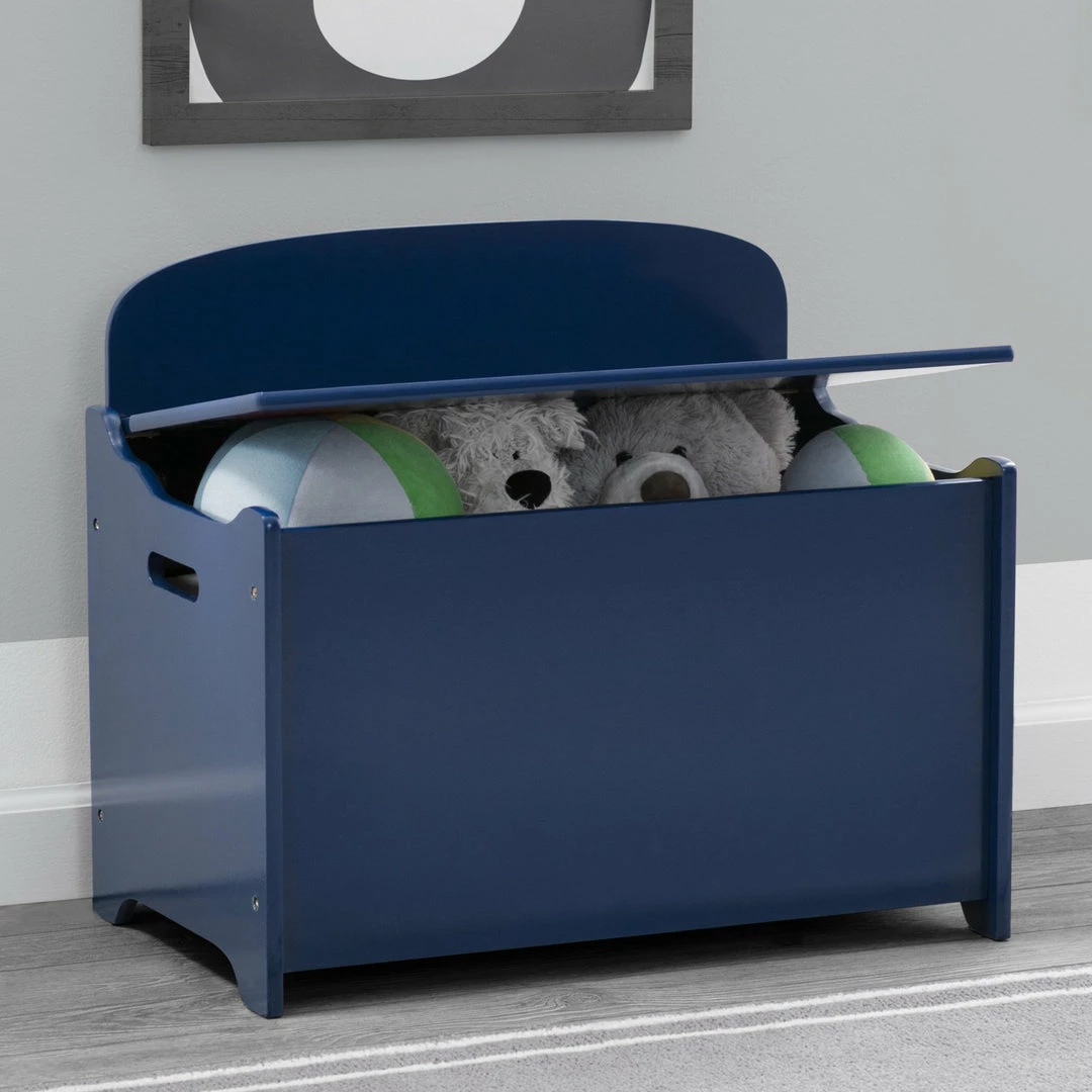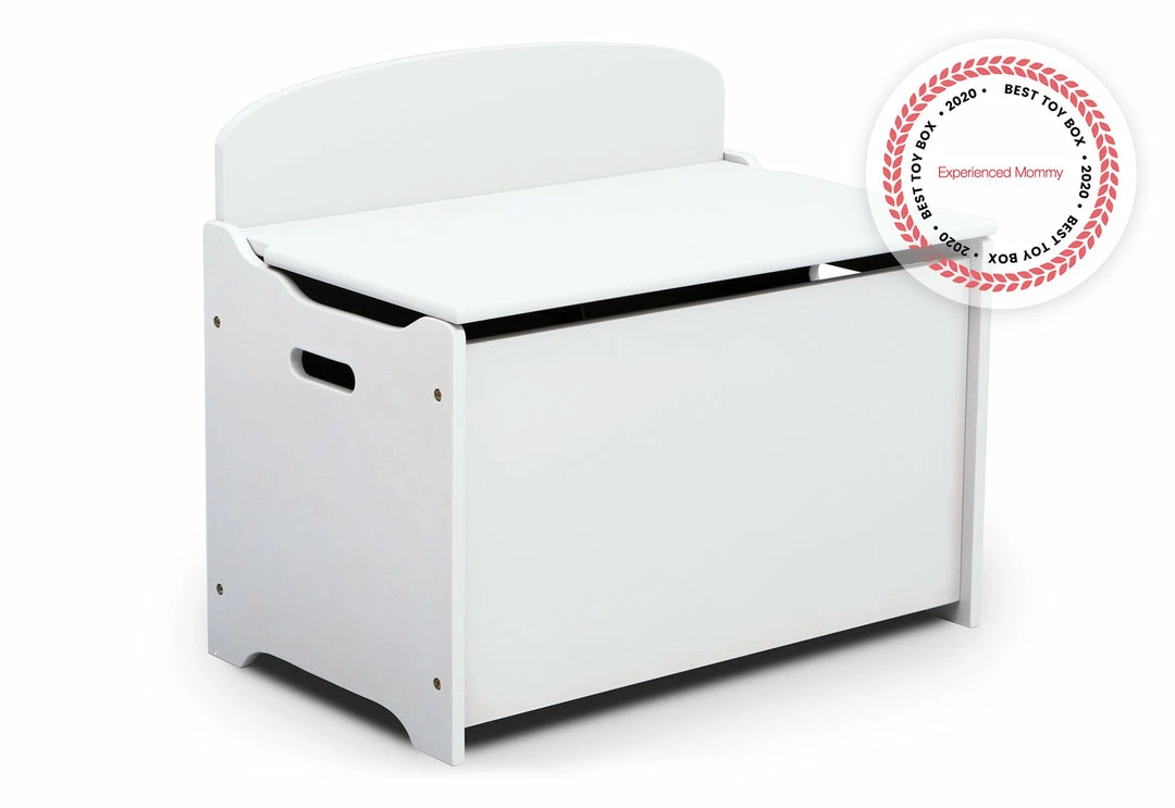 The MySize Deluxe Toy Box from Delta Children is a stylish storage option for the living room, playroom or your child’s bedroom. Outfitted with a spacious interior, this toy organizer provides plenty of space to store toys large and small. Cutout handles on either side allow you to easily move the toy box from room to room. Designed with a slow-closing lid to prevent little hands from getting caught, the MySize Deluxe Toy Box from Delta Children is a safe choice for your little one. Available in a number of beautiful colors. Coordinates with other items in the MySize Collection from Delta Children.