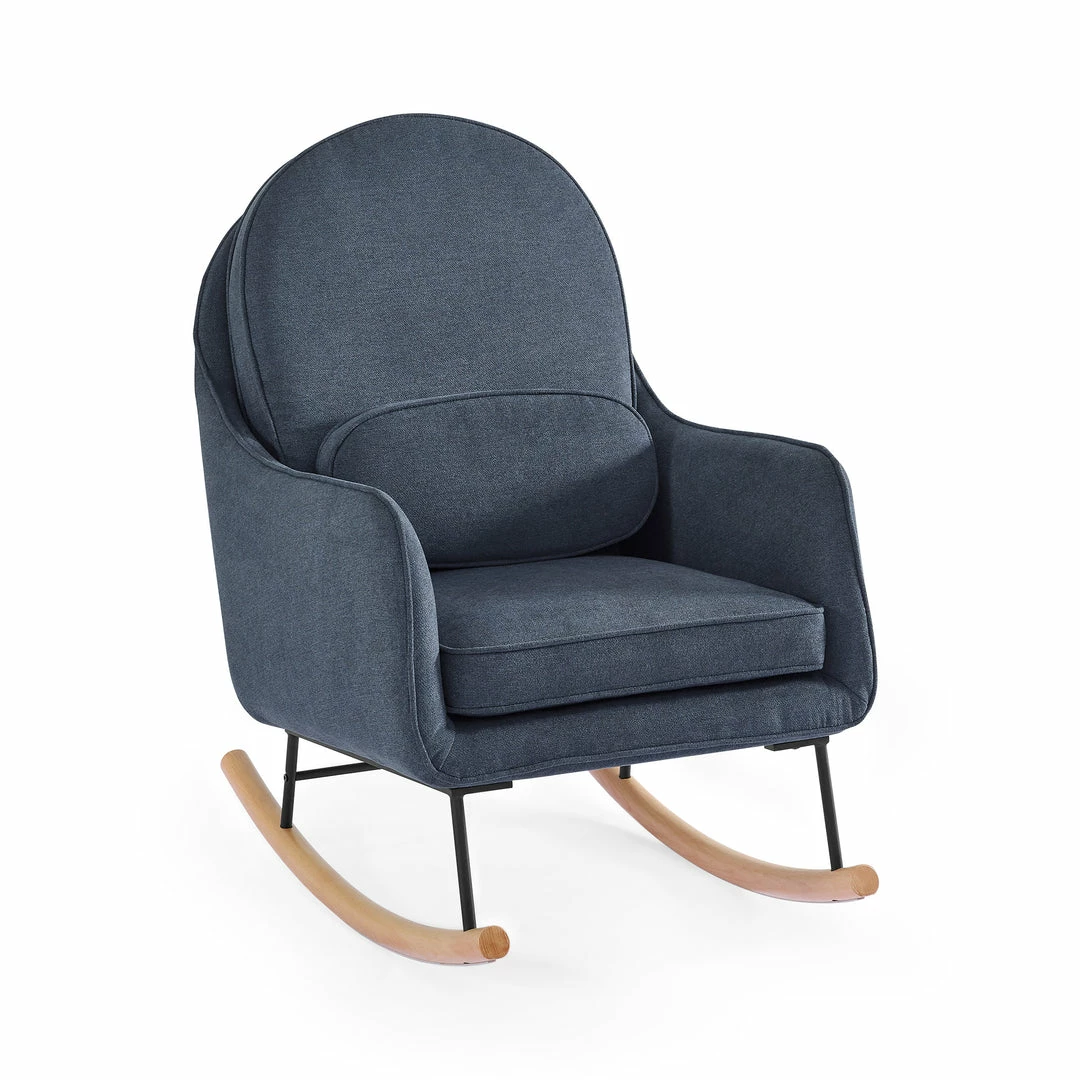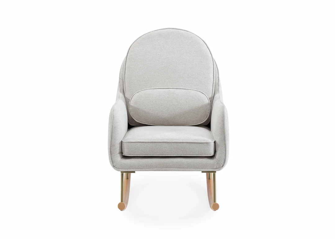 Add a stylish and sustainable seat to your nursery (or any other room in the house!) with this Ella Rocker by Delta Children. Upholstered in LiveSmart Evolve fabric, it brings together three incredible qualities to create a superior performance fabric: recycled fibers, water repellency, and stain resistance. Made with at least 30% of high-quality polyester yarn created from recycled post-consumer plastic bottles, this durable fabric helps divert plastics from landfills. Plus, it’s as comfy and beautiful as it is good for the environment. Designed with modern rounded curves, a metal base and solid wood feet, this rocking chair includes a movable lumbar cushion for additional support. The perfect choice for busy families, its stain-resistant and moisture repelling abilities make it the smart choice for high traffic areas like the nursery or living room. Now, you can live worry-free from stains or spills AND be a part of positive change! Pair with the coordinating Ella Ottoman to complete the look. Available in Limestone, Stone Grey and Slate Blue.