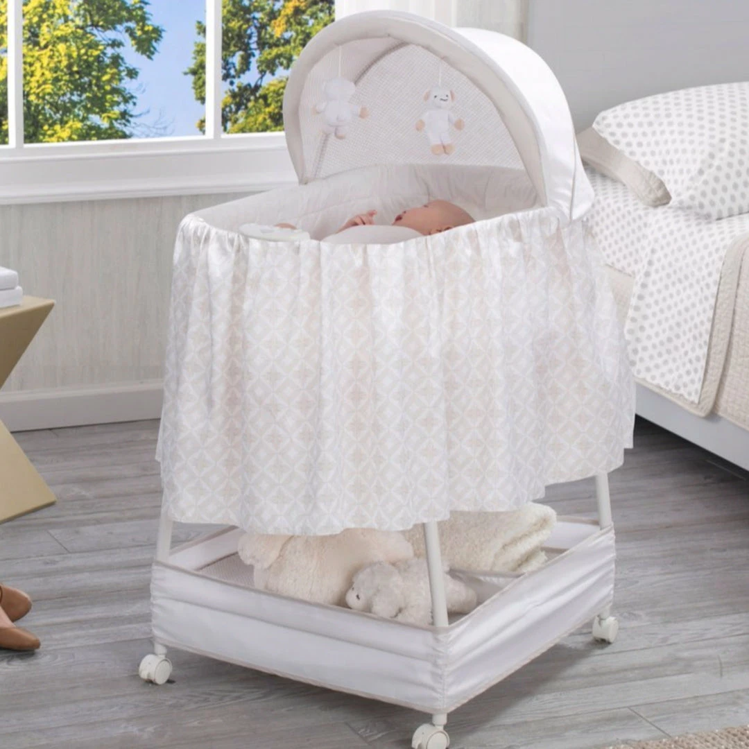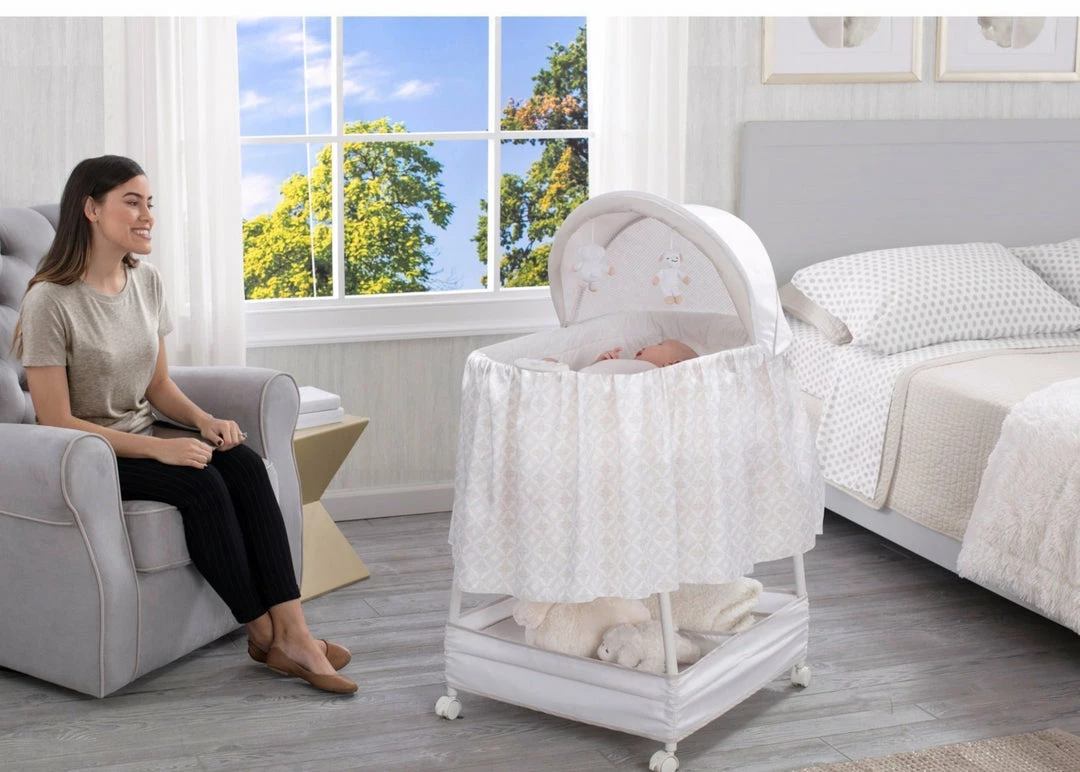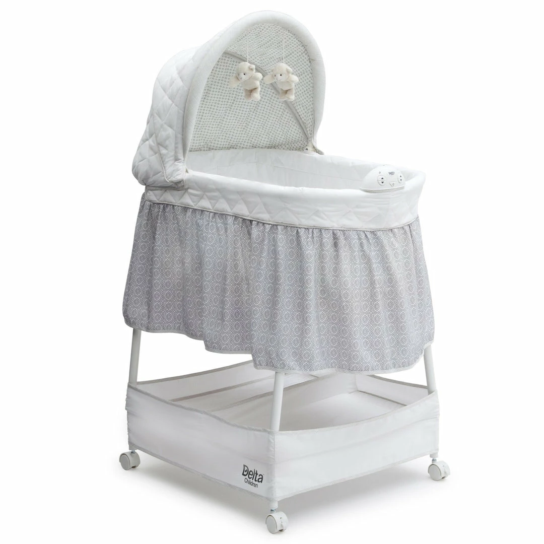 Make bringing home baby even more special with Delta Children’s Gliding Bassinet! Designed with a gliding base, it also features an electronic music module that plays soothing lullabies. Plus, it features a nightlight and gentle vibration, making bedtime a better experience for babies and parents.