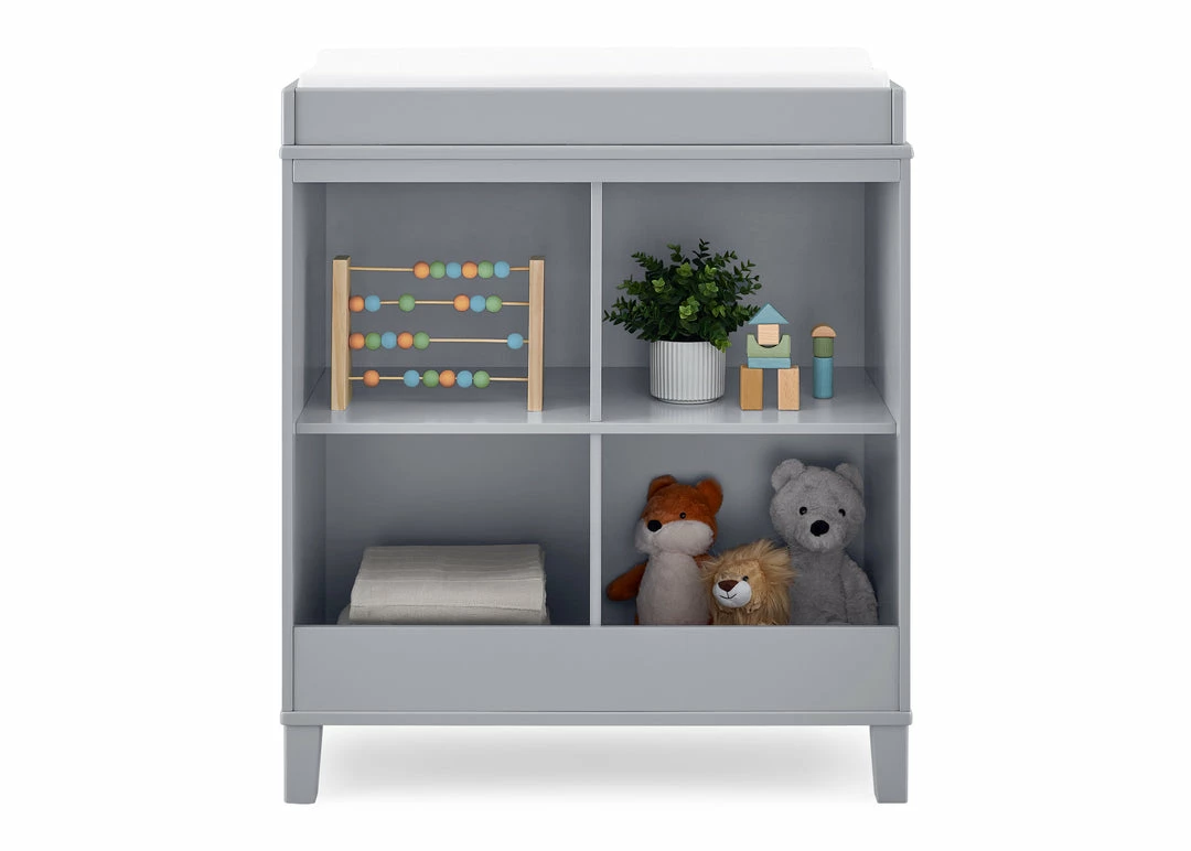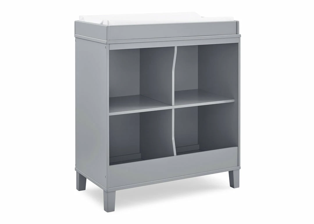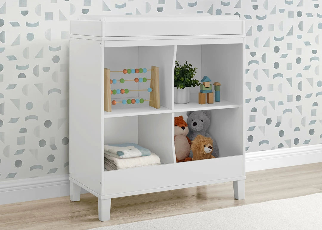 Change diapers and keep baby’s necessities within reach with the stylish, modern Huck Convertible Changing Table by Delta Children. The four open cubbies provide plenty of storage space and the included changing topper keeps the changing pad firmly in place (changing pad sold separately). Best of all, its innovative 2-in-1 design allows the changing topper to be easily removed once your child is potty-trained, effortlessly converting the piece into a standalone storage piece. A great option that will grow with your child, from nursery to big-kid room, the Huck Convertible Changing Table by Delta Children is also ideal for shared bedrooms, or anywhere you need a space-saving storage piece. Available in Grey or Bianca White, and coordinates with other items from Delta Children in the same finish.