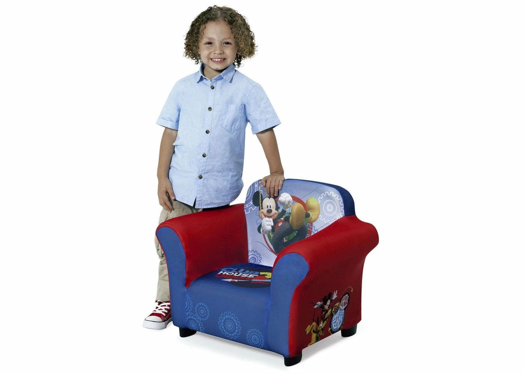 Your little one will have the coolest clubhouse ever with this Mickey Mouse Upholstered Chair from Delta Children. This cozy chair features a durable frame and plush foam padding covered by a removable slipcover. The colorful slipcover with cool graphics of Mickey and friends is machine washable for easy cleanup. The perfect kids-only spot for reading, watching movies or just relaxing, it makes any activity extra special.