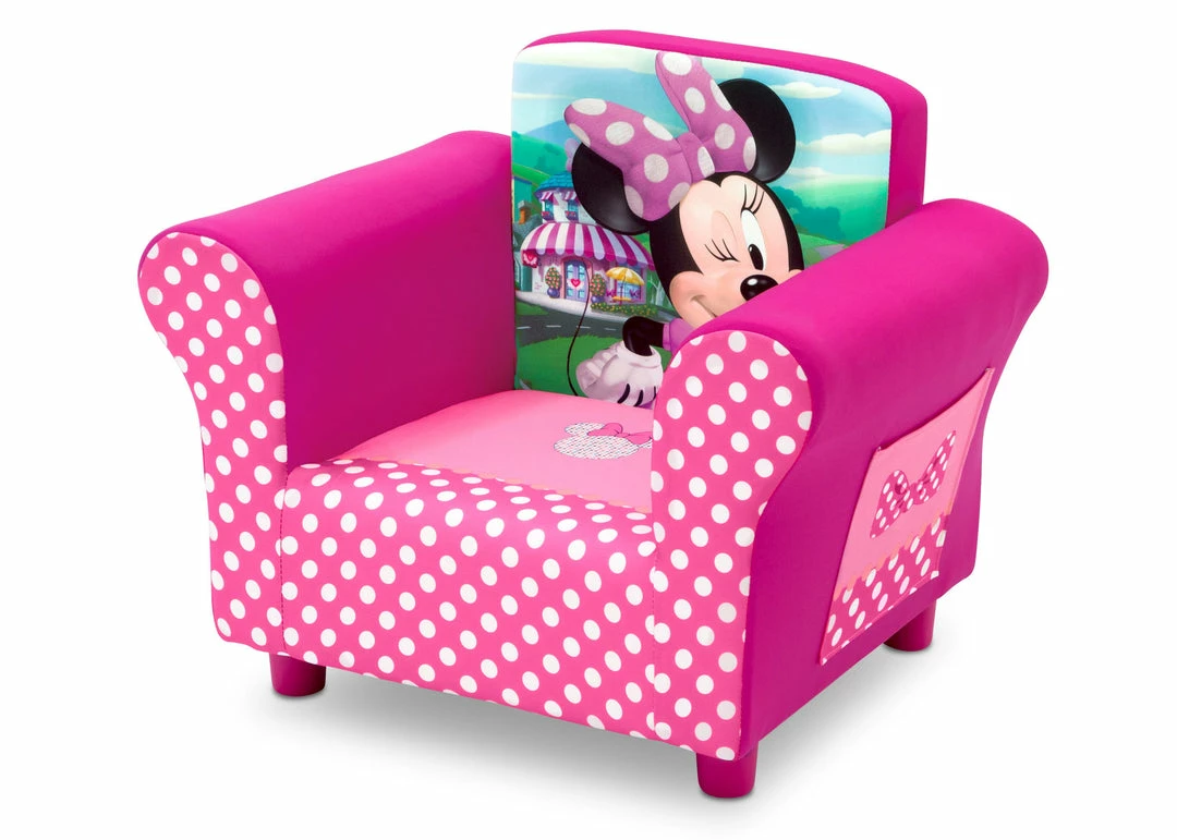 She’ll love to snuggle up in this Disney Minnie Mouse Upholstered Chair from Delta Children! A cozy toddler chair, it features a durable wood frame, plush foam padding, storage pockets on both sides, and adorable graphics of every girl’s favorite mouse, Minnie. The perfect kids-only spot for reading, watching movies or just relaxing, it makes any activity extra special.