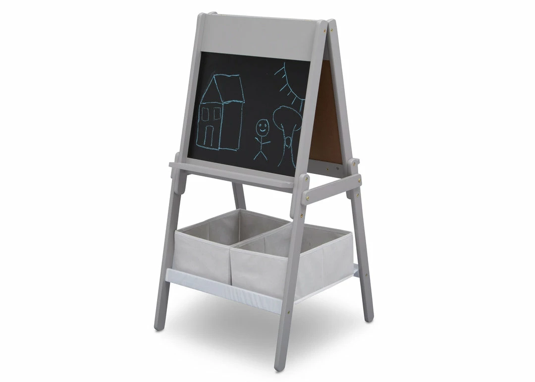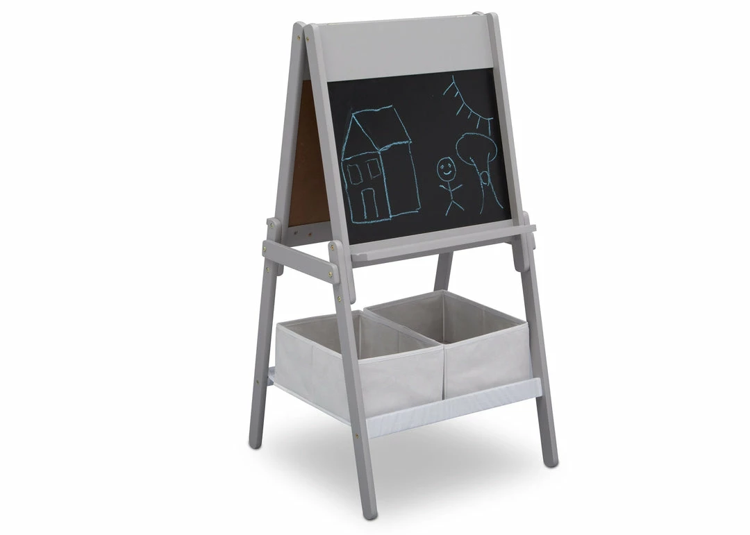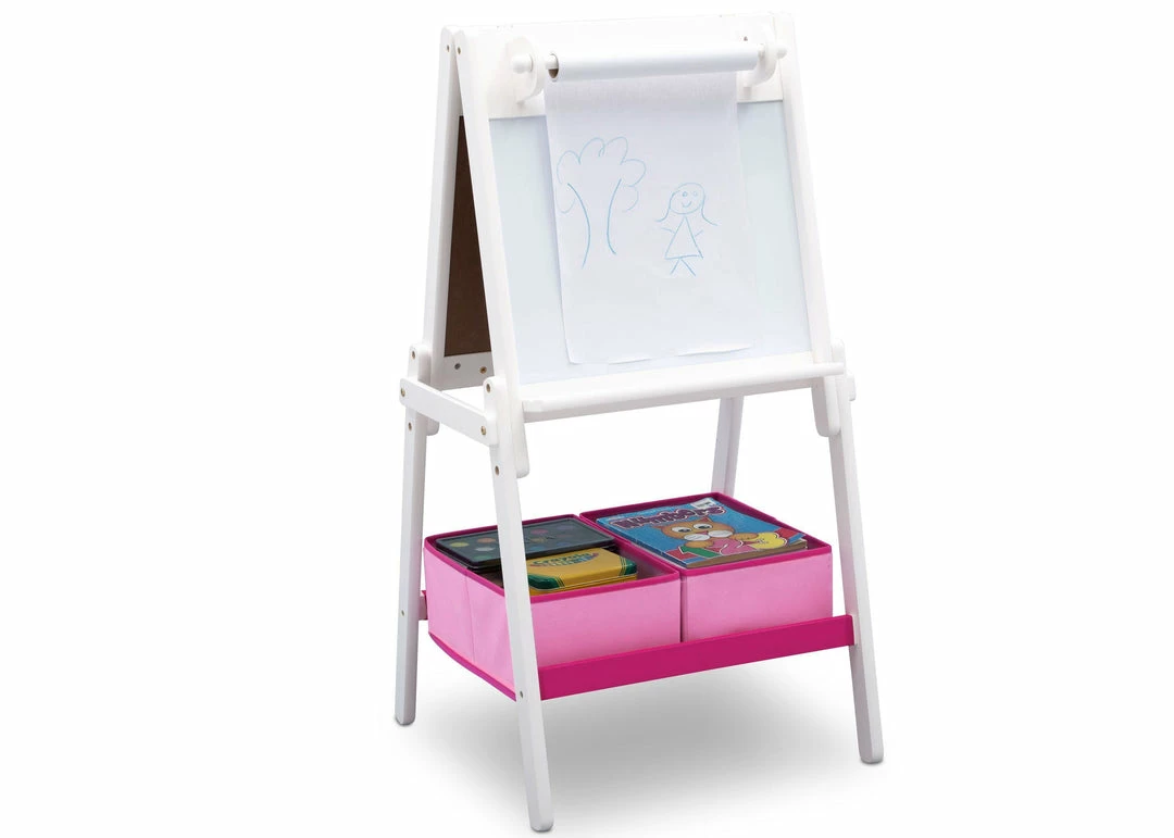 - Two convenient fabric storage bins keep crayons, markers, extra paper, paint or toys within reach