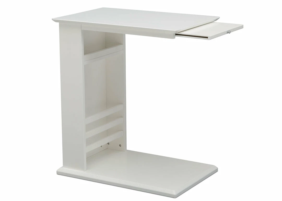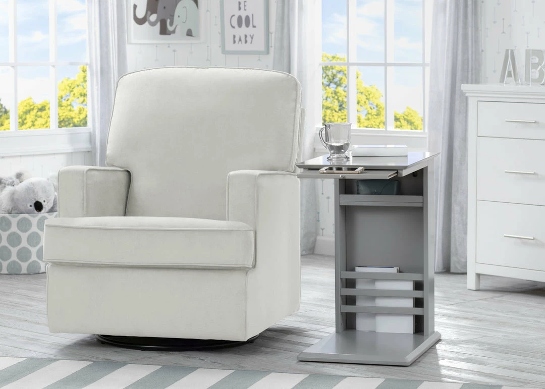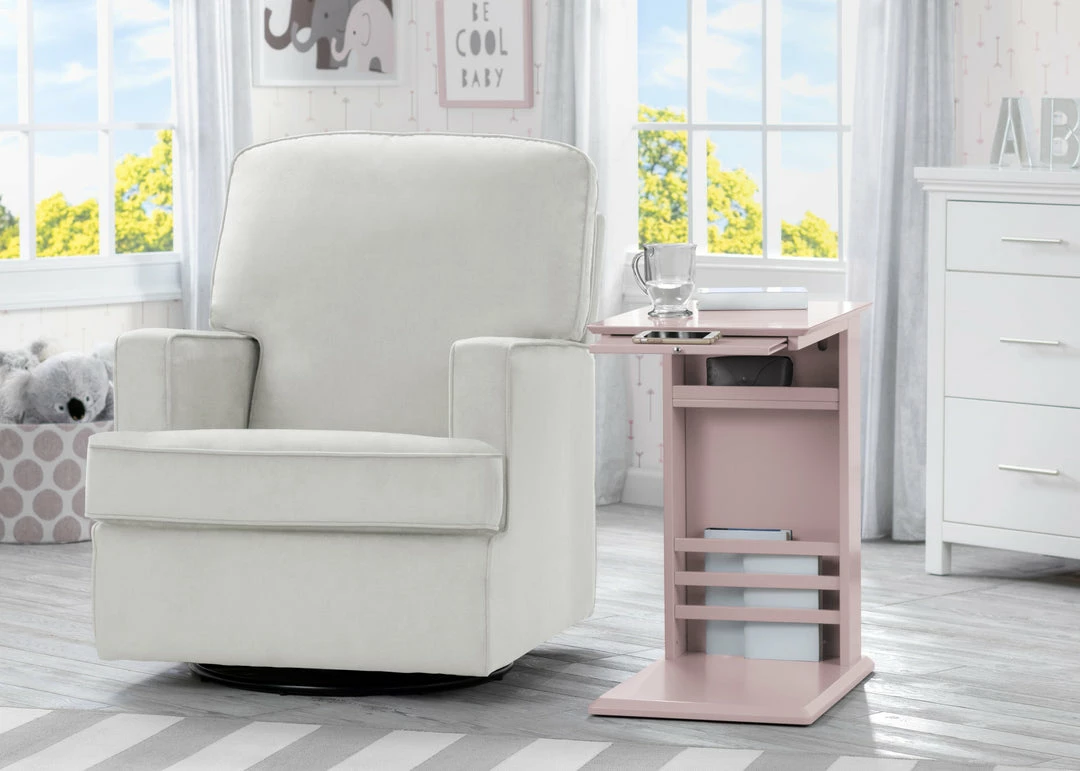The simple lines and hidden storage on the Delta Children Nolan End Table/Side Table for the Nursery will keep your room looking great and organized! The thin base of the table can easily slide under/in front of most nursery gliders, sofas, couches or beds to make bottles, books, remotes or your phone easier to reach. A handy book rack on the side provides additional storage, and the spacious tabletop provides enough room for a lamp and knickknacks. A slide-out shelf below the tabletop offers an extra surface when you need it, then tucks away nicely when you don’t. A great space-saving option in any room of the house, from the nursery to the living room, the Nolan End Table/Side Table from Delta Children ensures you’ll always have all your essentials right beside you. Available in Ebony, Grey, Bianca White, Lotus Pink or Misty Blue.