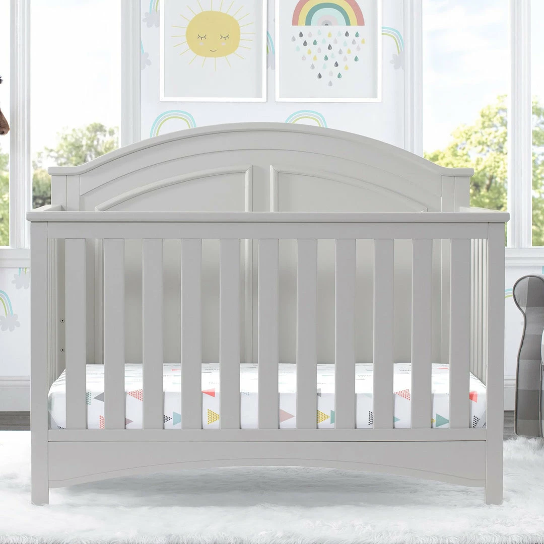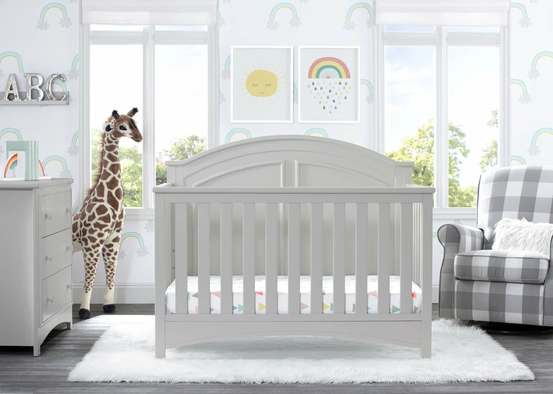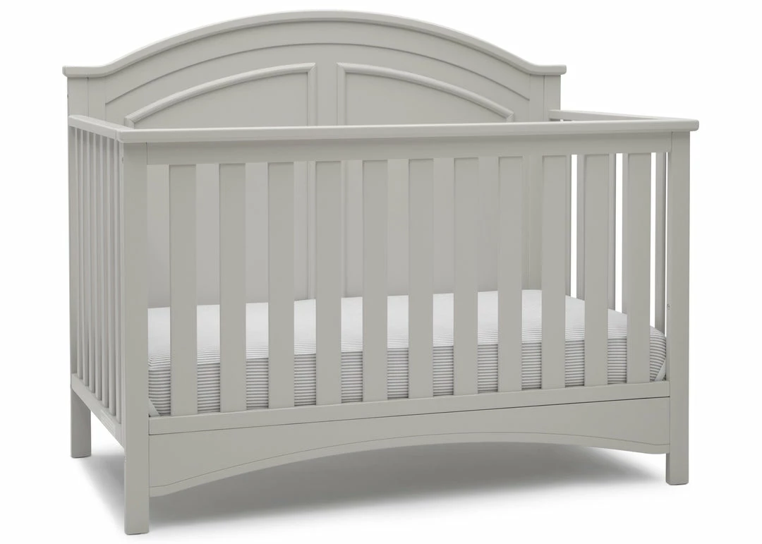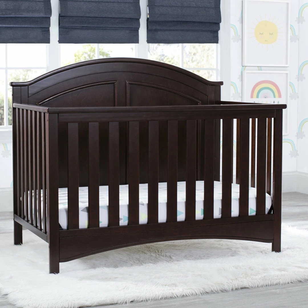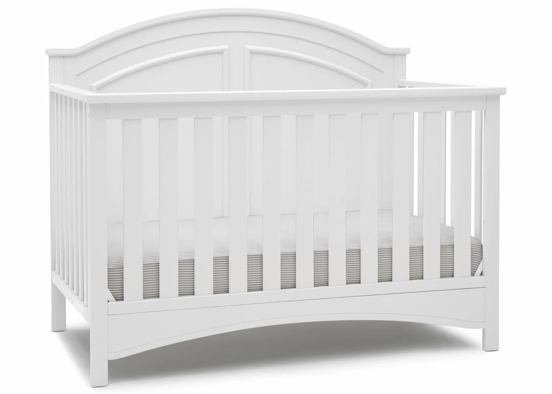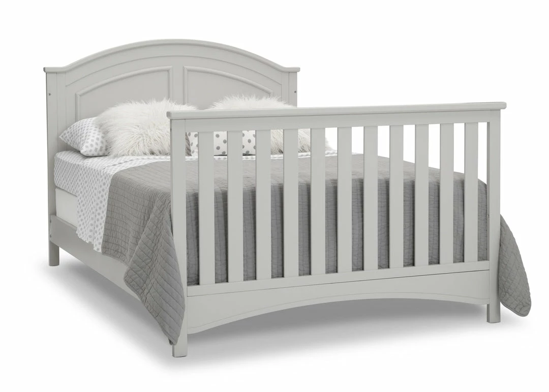 Subtle curves, crown molding and a graceful arch make the Perry 6-in-1 Convertible Crib by Delta Children quietly sophisticated (and quiet is just what you want in a nursery!). Designed to grow with your baby, it features an adjustable three-position mattress platform that keeps baby safe at all stages—lower it as your baby begins to sit or stand. Plus, it converts from a crib into a toddler bed, daybed, sofa, full size bed with headboard only and full size bed with headboard and footboard—it’s the only bed your child will ever need! Available in Bianca White, Moonstruck Grey and Walnut Espresso. Complete your baby’s nursery with coordinating items in the Delta Children Perry Collection.
