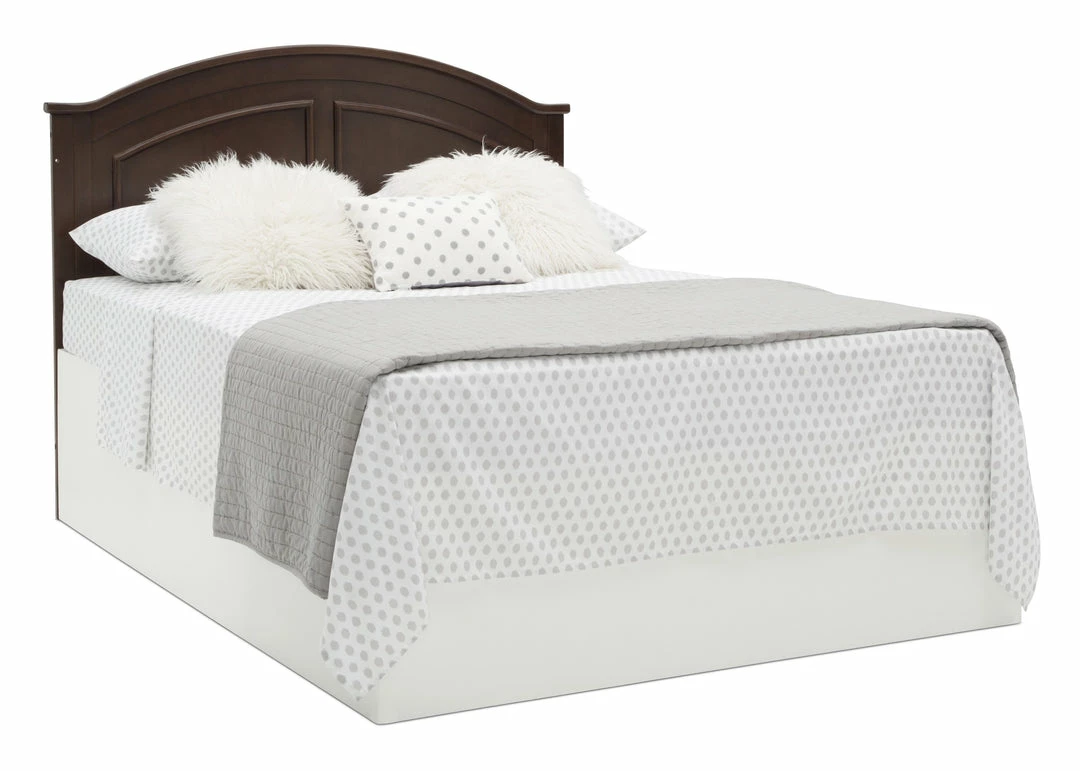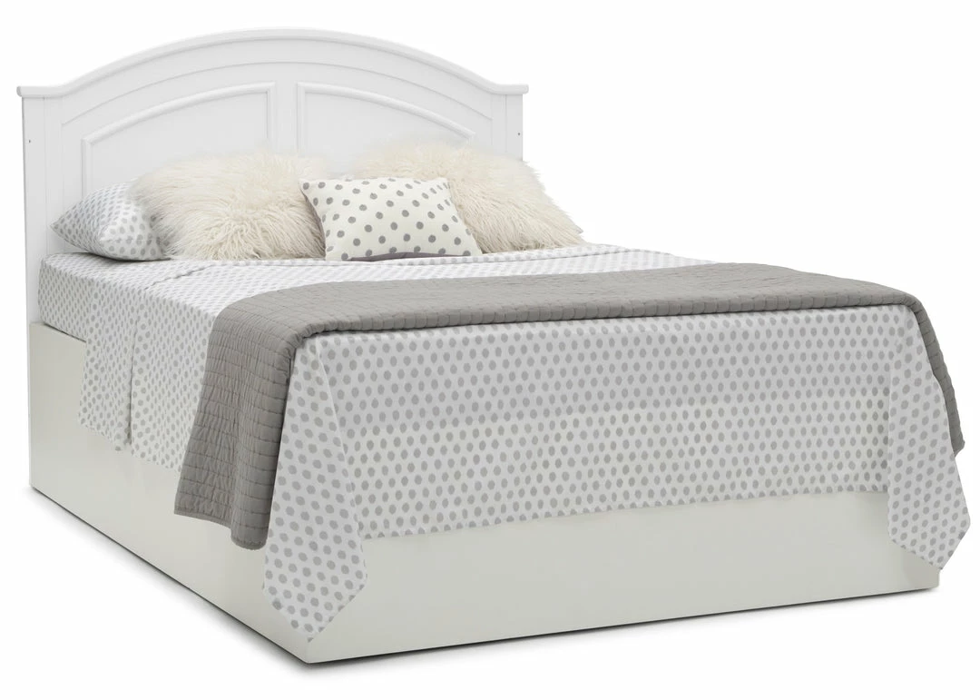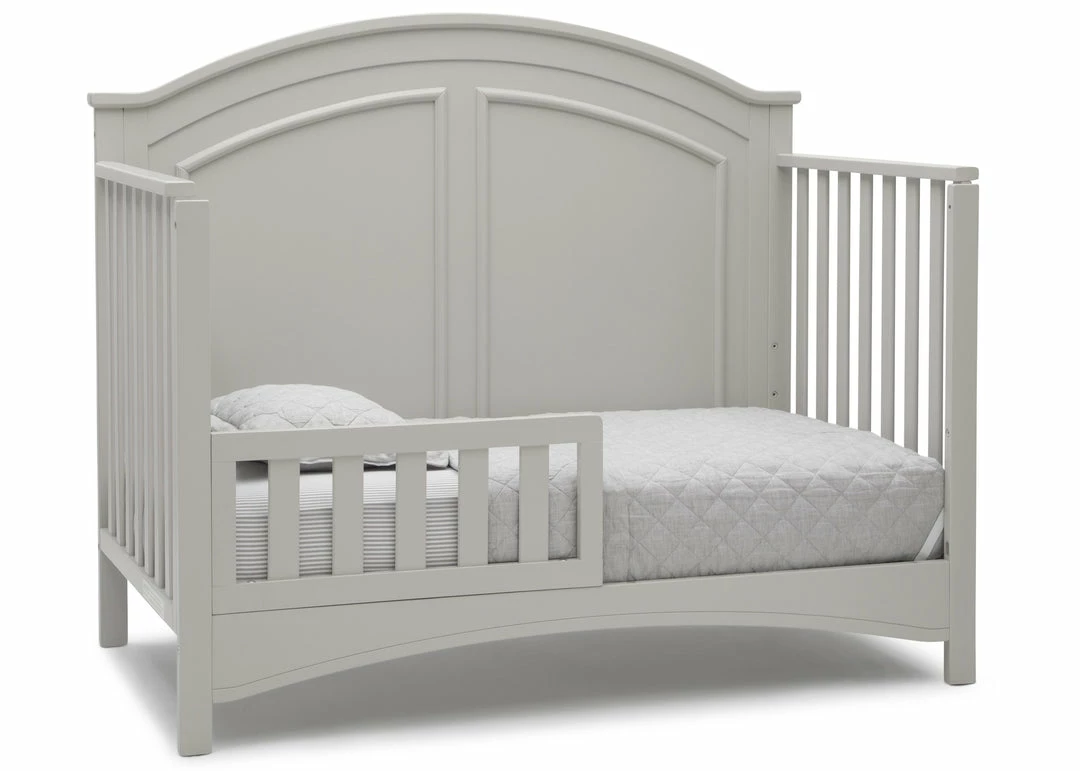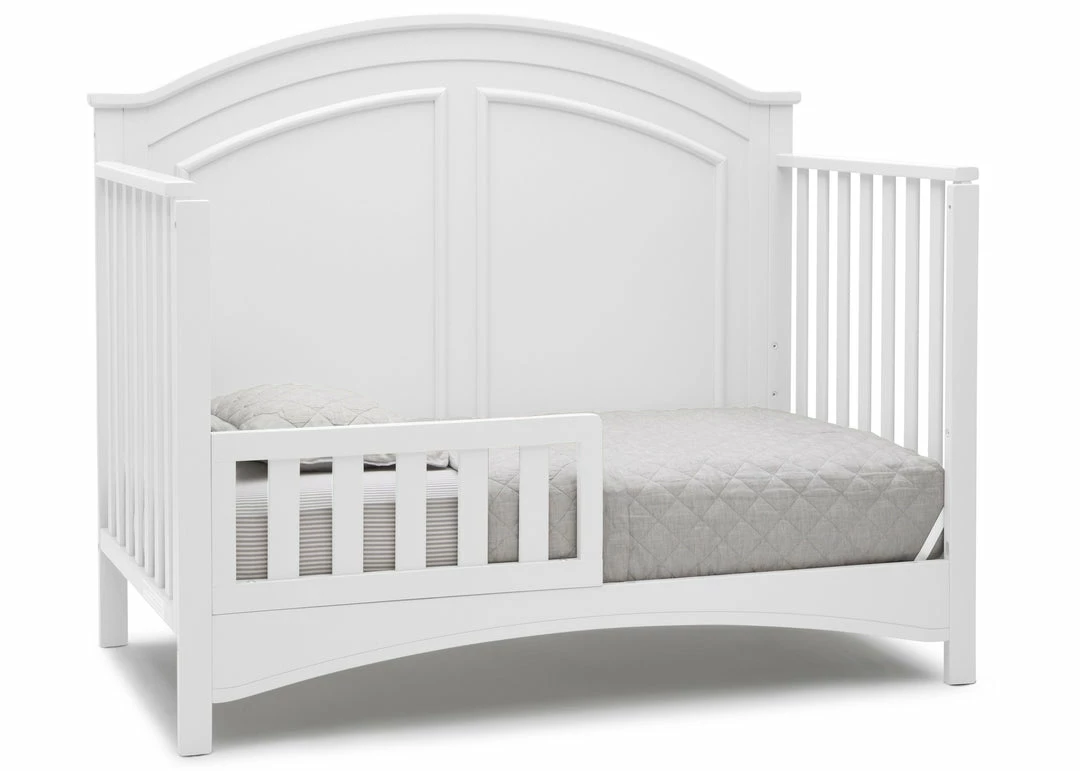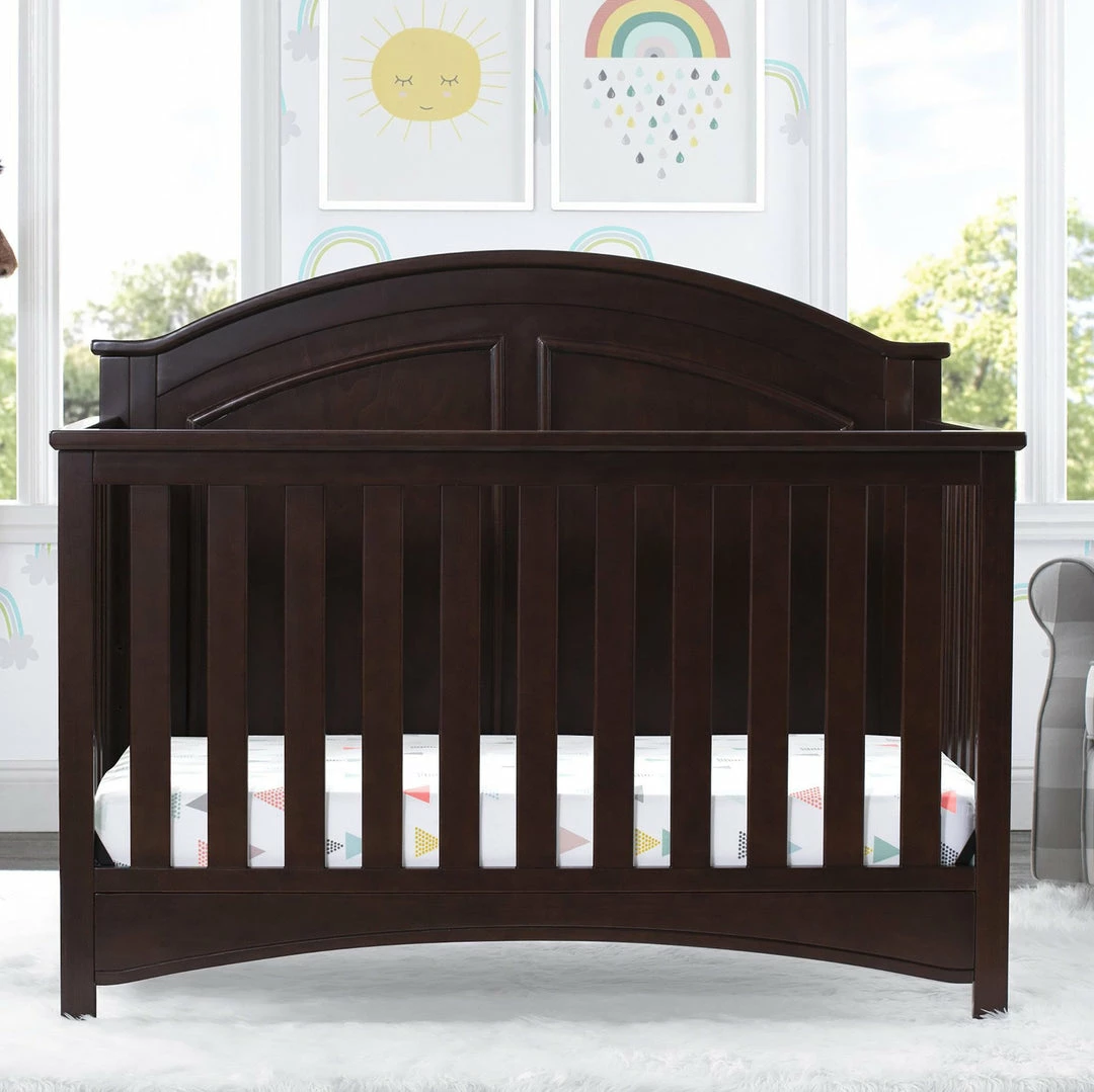 Subtle curves, crown molding and a graceful arch make the Perry 6-in-1 Convertible Crib by Delta Children quietly sophisticated (and quiet is just what you want in a nursery!). Designed to grow with your baby, it features an adjustable three-position mattress platform that keeps baby safe at all stages—lower it as your baby begins to sit or stand. Plus, it converts from a crib into a toddler bed, daybed, sofa, full size bed with headboard only and full size bed with headboard and footboard—it’s the only bed your child will ever need! Available in Bianca White, Moonstruck Grey and Walnut Espresso. Complete your baby’s nursery with coordinating items in the Delta Children Perry Collection.