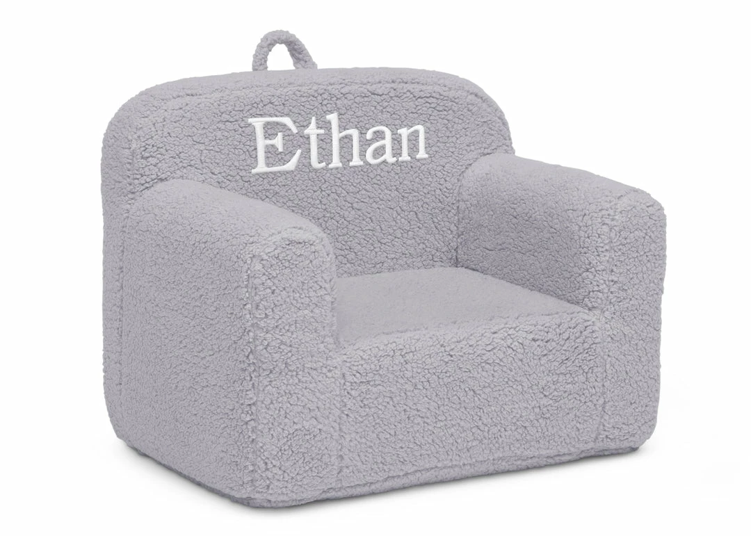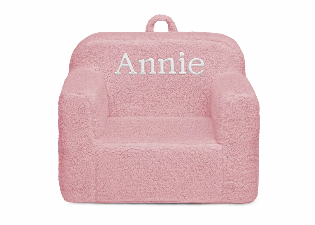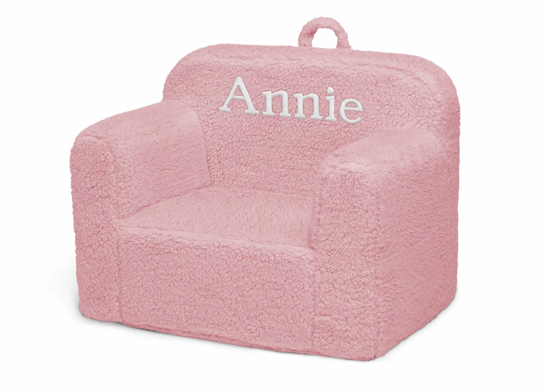 Cozy up to the Cozee Sherpa Chair for Kids by Delta Children. A snuggly spot for reading, watching TV or just hanging out, this supremely comfy chair features a Sherpa slipcover that adds texture and comfort, plus it’s removable and machine washable for easy cleaning. Perfect for the playroom, living room or your child’s bedroom, this kids’ foam chair goes anywhere they do–the lightweight design with handle on top is easy to move from room to room. Personalize it with a name for the perfect finishing touch. Recommended for ages 18 months+.
