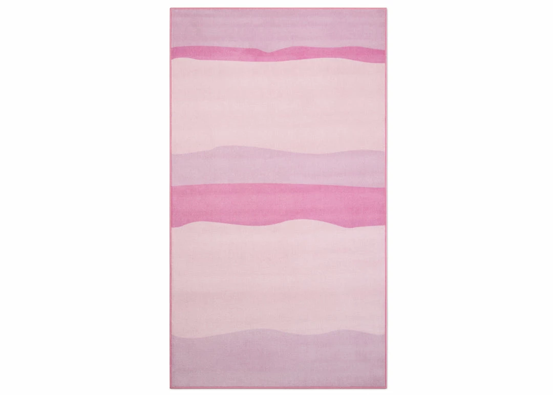 Brighten up any space with this Pink Ombre Rectangle Area Rug by Delta Children. This fun rug features a stunning ombre stripe design in shades of pink. A great option for your child’s bedroom or playroom, this generously sized area rug is made from soft and durable materials to ensure it’s the perfect place to sit and play or read. The rug’s non-slip latex backing makes it safe to use on types of flooring and reinforced borders prevent fraying.
