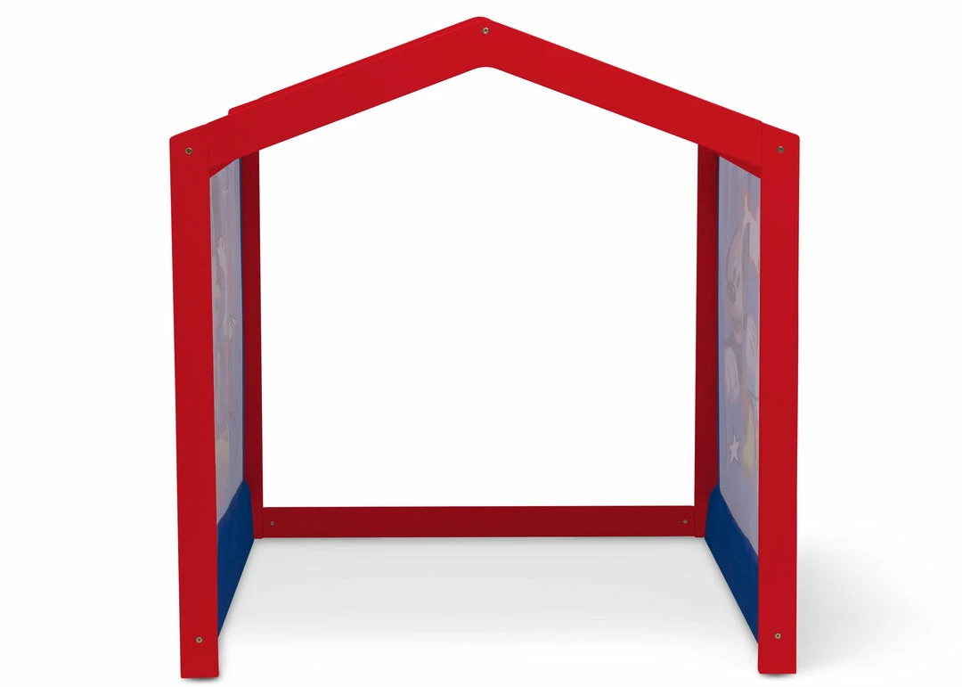 Oh boy! Kids can create their very own Clubhouse with this Disney Mickey Mouse Indoor Playhouse with Fabric Tent by Delta Children. The durable wood frame is draped in colorful tent fabric that features bold graphics of everyone’s favorite mouse, Mickey. A magical fort for boys and girls to play or read, it’s designed to enrich imaginations and encourage kids to create a whole make-believe world inside–decorate the inside of the playhouse with a table, stuffed animals, throw pillows, blankets and more! This large wood playhouse stands just under 4 feet tall, and its sturdy construction ensures your child will make this a special place for creative play for years to come! Roomy enough for multiple children. Designed for indoor use only.