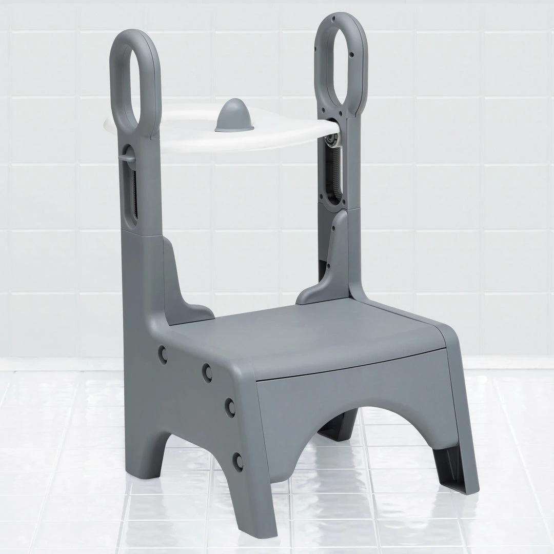 The Little Jon-EE Adjustable Potty Seat and Step Stool by Delta Children is an easy and convenient way to start toilet training with your little one. Combining a potty seat and step stool all into one convenient piece, this ladder seat allows little ones to safely step up, hold the handles and turn around to sit on the toilet–they will feel secure and confident as the begin toilet training! Easy to clean, this ladder seat features an integrated splash guard that makes it perfect for boys or girls to use, and the universal fit and adjustable height ensures it works with most standard round and elongated toilets. What else makes this potty ladder seat awesome? It easily converts to a step stool! Just fold the seat down and use the step stool at the sink, kitchen counter or anywhere else your child needs a boost, the non-slip feet and non-slip step stool surface provide security. Designed in a classic white and grey colorway, the Little Jon-EE Adjustable Potty Seat and Step Stool will coordinate with your existing décor. Get the Little Jon-EE Adjustable Potty Seat and Step Stool by Delta Children when it’s time for your little one to start their potty-training journey–it will help them conquer toilet training easily and quickly!