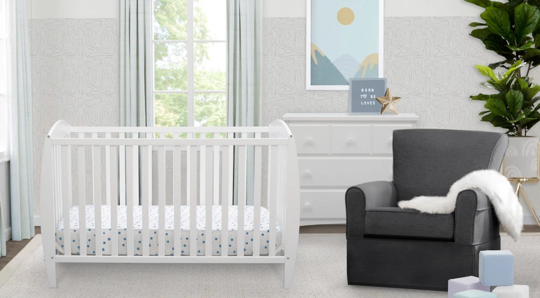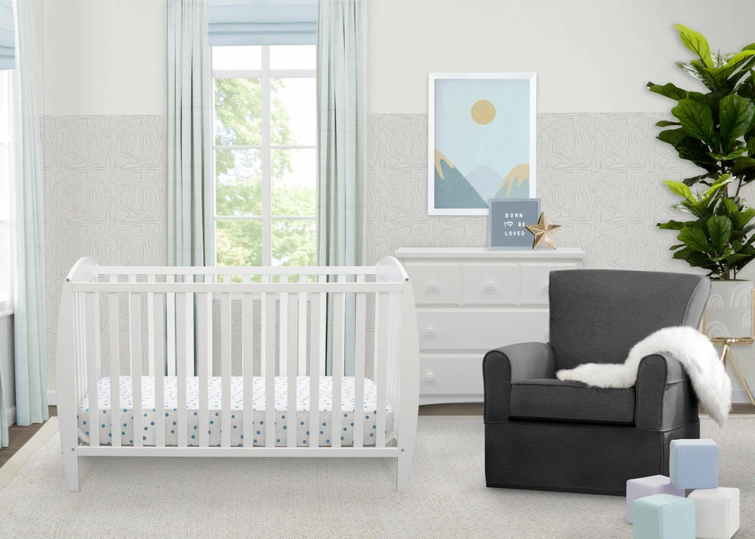 Set the tone for a beautiful and calming nursery with the Taylor 4-in-1 Crib. The crib puts a playful spin on classic style—just the thing you need to give your baby’s room the perfect amount of personality. An exceptional value, the Taylor 4-in-1 Convertible Crib from Delta Children provides your little one the right bed for every age and stage: from infancy all the way to their teenage years