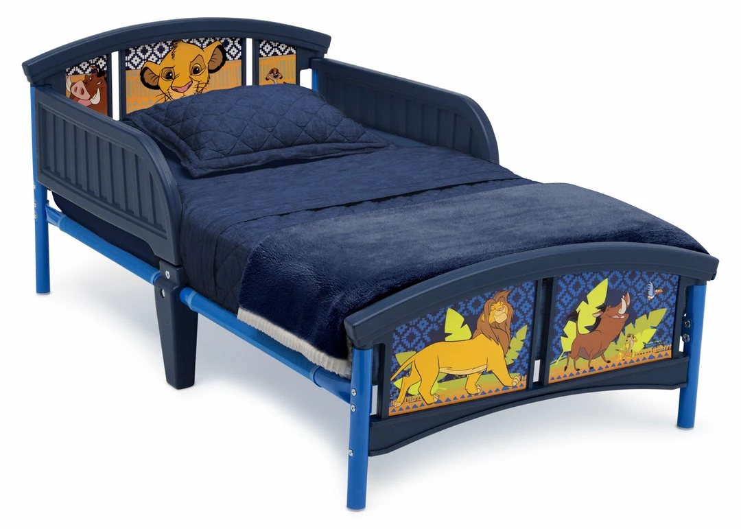 Your pride and joy will be on the prowl for nightly adventures in dreamland with The Lion King Plastic Toddler Bed by Delta Children. Featuring adorable graphics of Simba at various ages, Timon and Pumbaa, it transports any bedroom into a magical world. Designed to keep your child safe, this sturdy toddler bed is built low to the ground and features two attached guardrails for additional security. Plus, it’s the perfect kid-sized height, and allows children to get in and out on their own.