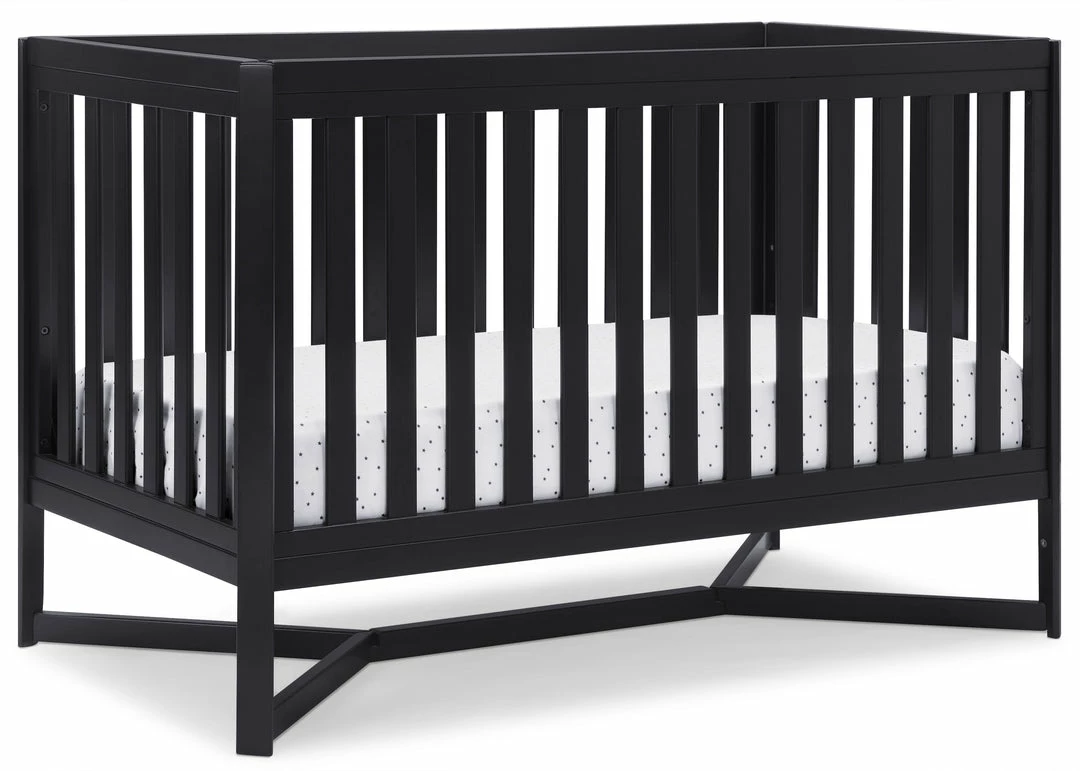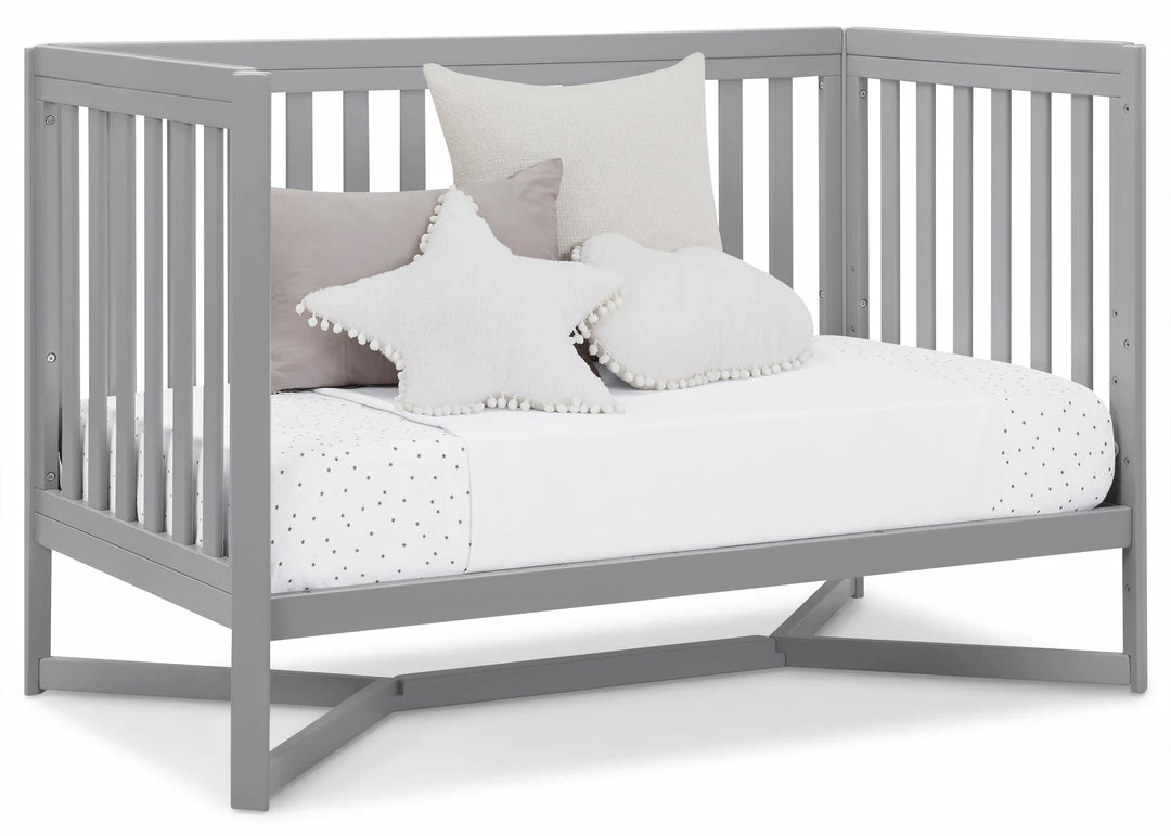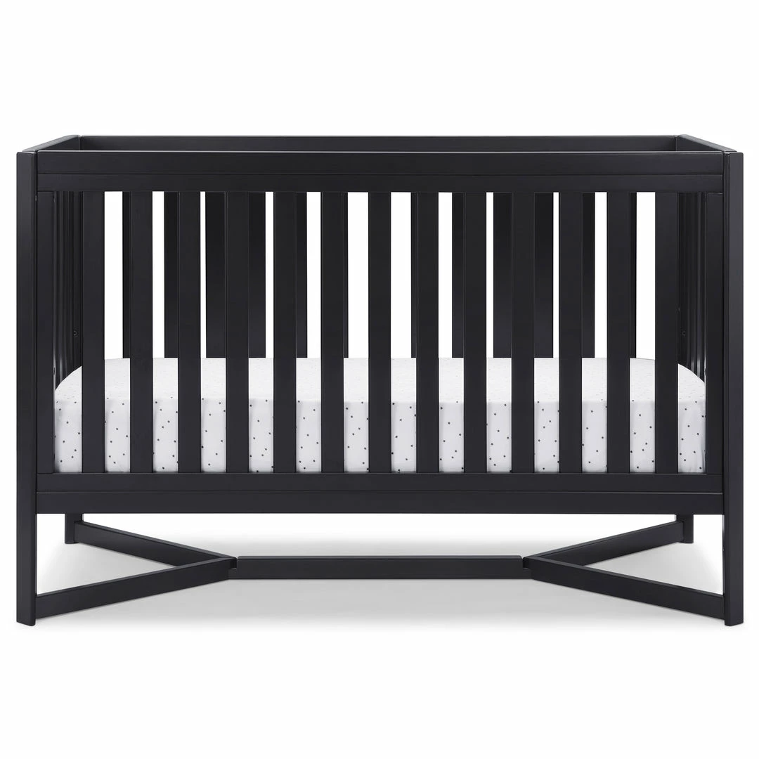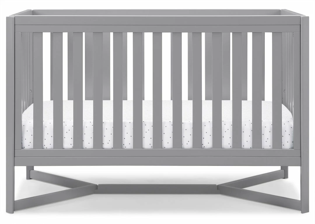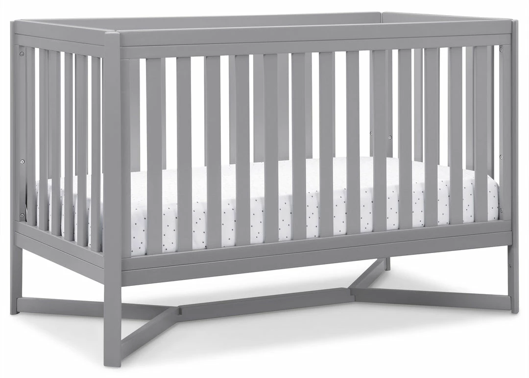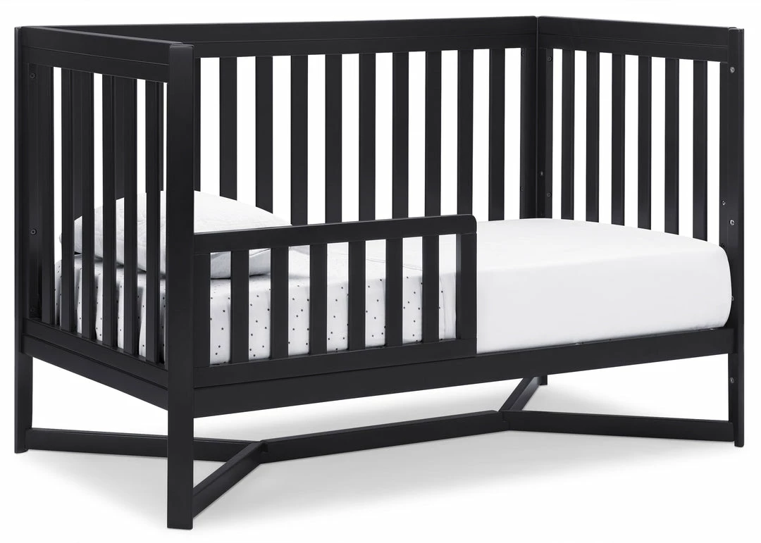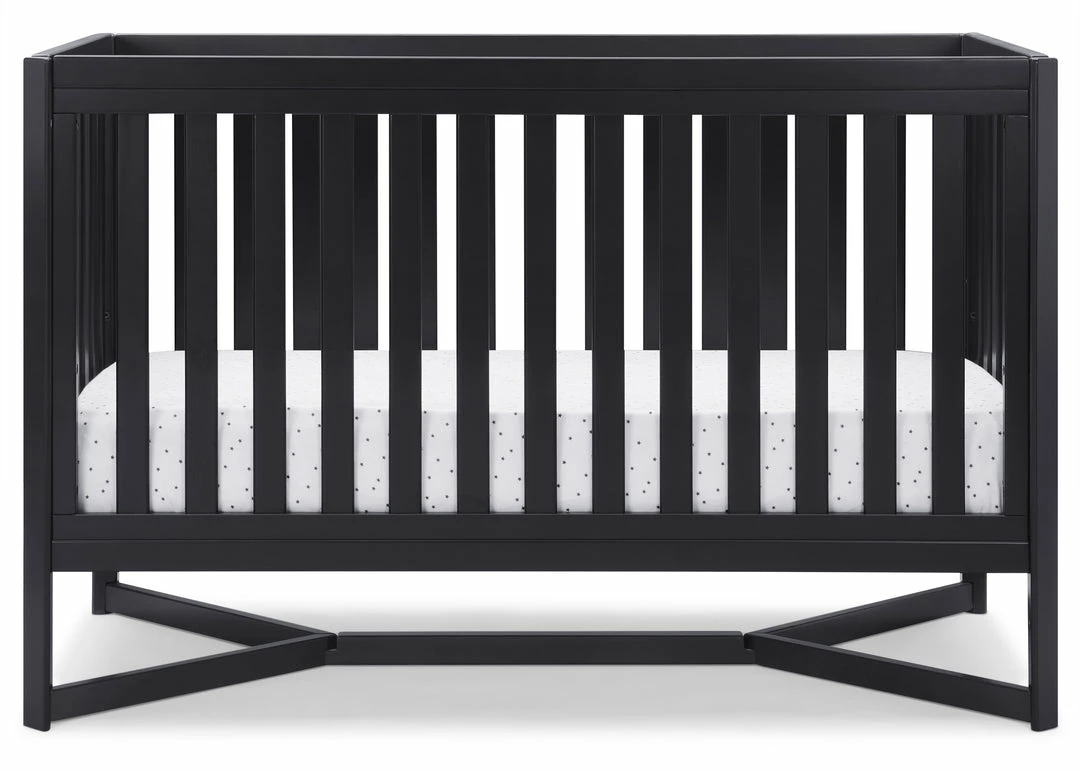 Designed to be the centerpiece of your nursery, the Tribeca 4-in-1 Convertible Crib by Delta Children exudes contemporary cool. Featuring plenty of modern touches it boasts a sleek x-shaped base and airy slats. Crafted from strong and sturdy wood, this crib features three height levels, and converts to a toddler bed, daybed and full size bed, making it the only bed your baby will every need. Toddler Guardrail #0080, Full Size Wood Bed Rails #0050 or Full Size Metal Bed Frame #0040 sold separately.