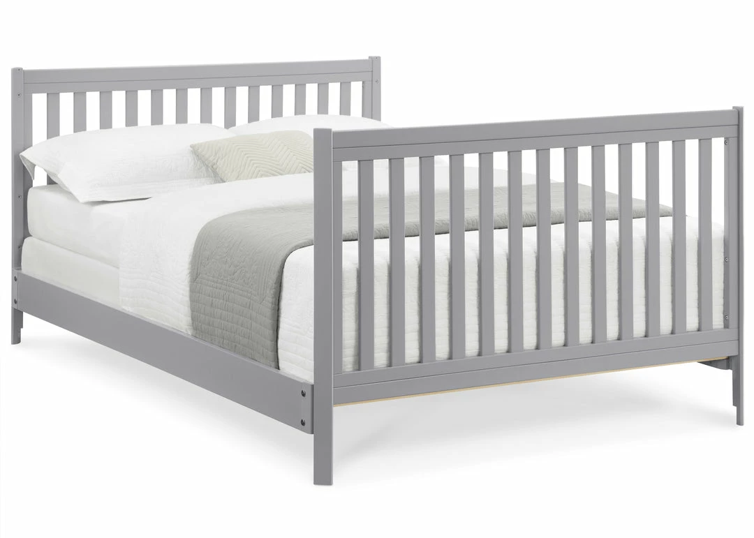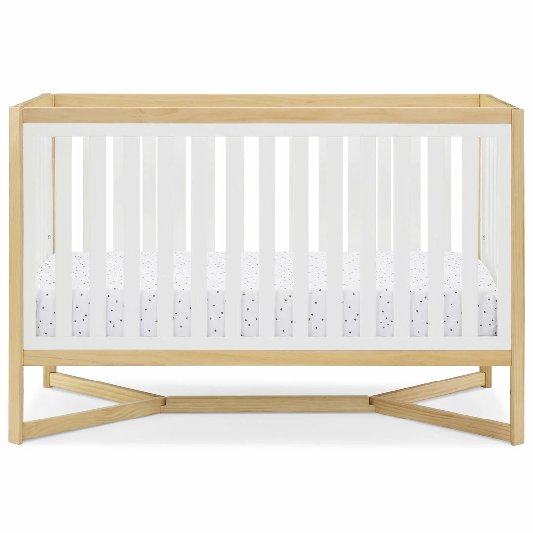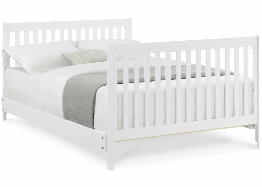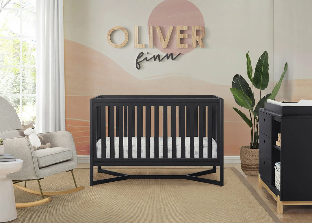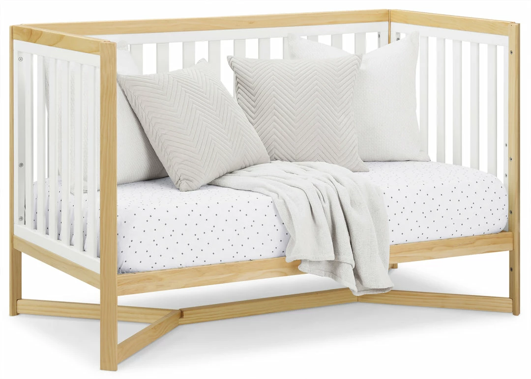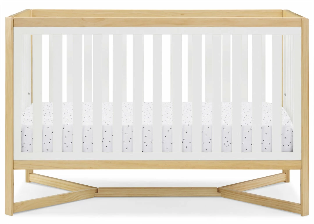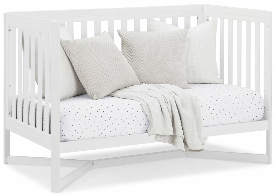 Designed to be the centerpiece of your nursery, the Tribeca 4-in-1 Convertible Crib by Delta Children exudes contemporary cool. Featuring plenty of modern touches it boasts a sleek x-shaped base and airy slats. Crafted from strong and sturdy wood, this crib features three height levels, and converts to a toddler bed, daybed and full size bed, making it the only bed your baby will every need. Toddler Guardrail #0080, Full Size Wood Bed Rails #0050 or Full Size Metal Bed Frame #0040 sold separately.