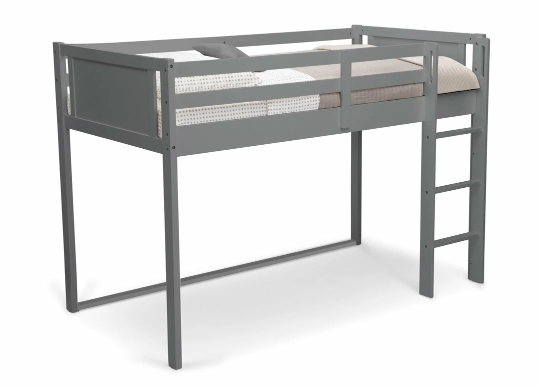 Free up your floor space while increasing storage and play space with this Low Twin Loft Bed with Guardrail and Ladder by Delta Children. Its timeless and modern design will work with any décor, while the versatile wood frame provides space underneath to store toys, create a remoting learning workstation or a fun fort hangout, anything is possible–your child’s imagination makes this loft bed their very own. Built to withstand everything your little one can throw at it, the bed’s sturdy wood construction with non-slip ladder and guardrails on all sides offers ultimate safety and security. Add our coordinating character tent to complete your child’s space (sold separately). Bed measures 77.6″L x 41.5″W x 53.5″H, fits a twin-size mattress (sold separately). Holds up to 250 lbs.