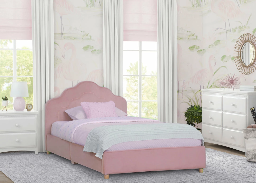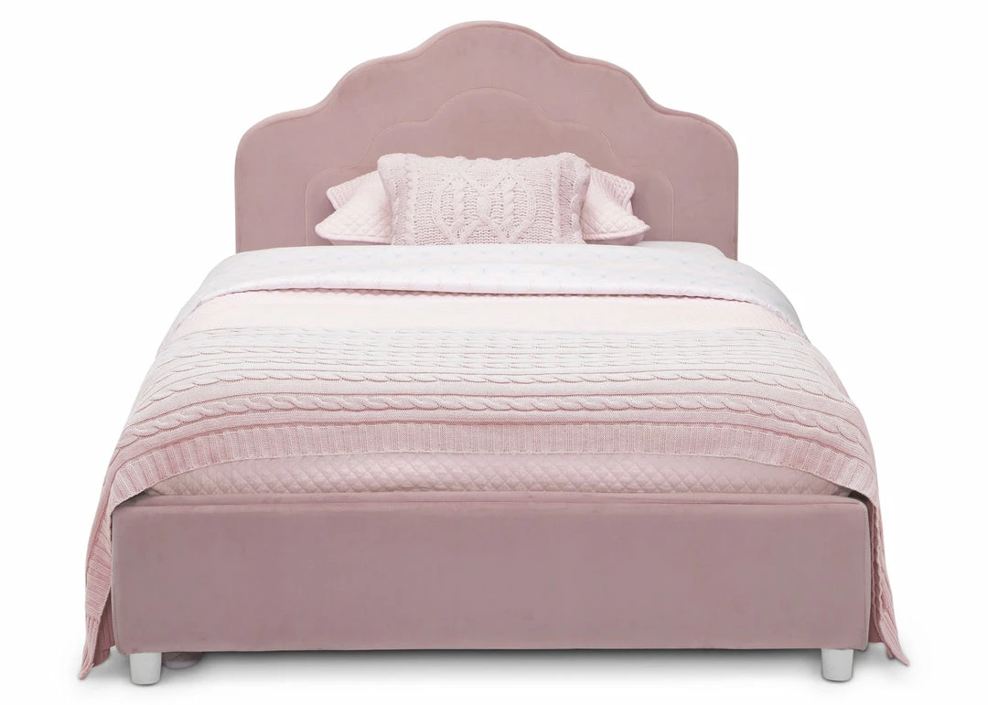 Inspire Sweet dreams with this Upholstered Twin Bed by Delta Children. Perfect for your little one’s bedroom, This kids’ twin bed shows off velvety upholstery with a playful scalloped silhouette for a look both you and your child will love. Generous padding ensures long-lasting comfort and support while sitting up to read or watch TV. The bed’s durable wood platform frame with slats eliminates the need for a box spring. Twin mattress sold separately. Delta Children was founded around the idea of making safe, high-quality children’s furniture affordable for all families. They know there’s nothing more important than safety when it comes to your child’s space. That’s why all Delta Children products are built with long-lasting materials to ensure they stand up to years of jumping and playing. Plus, they are rigorously tested to meet or exceed all industry safety standards.