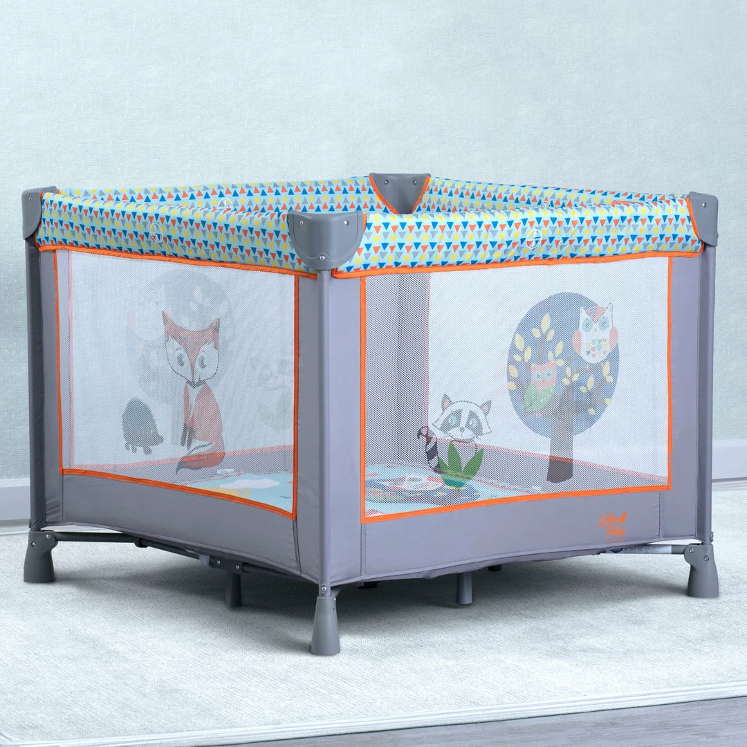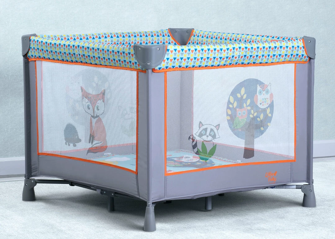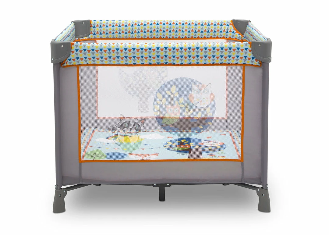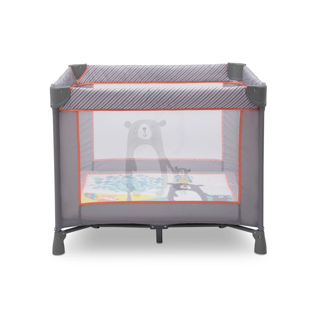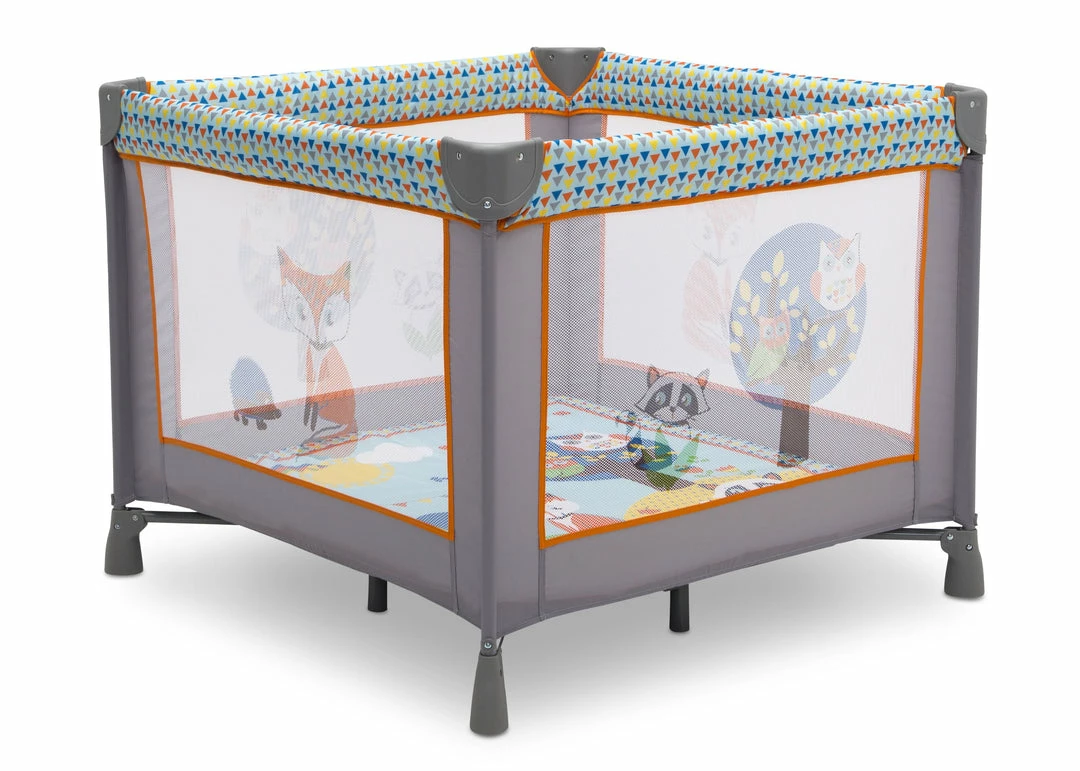 Playtime and naptime can take place anytime or anywhere, with the fuss-free Little Folks 36 x 36 Play Yard by Delta Children. A spacious square design affords plenty of room for your baby to safely play or rest, while mesh windows around all four sides provide maximum airflow and a clear view of your child. Featuring a compact fold and travel bag for easy mobility, it also comes with a brightly colored, super-comfy removable mattress pad that does double duty, converting from a plush play space in the play yard to a tummy time floor matt when needed.
