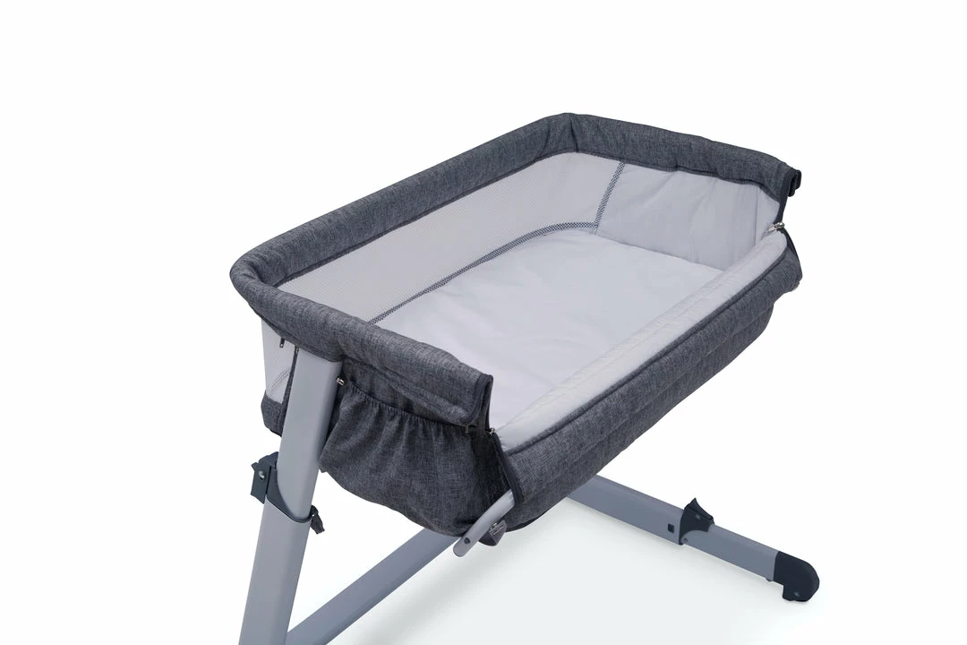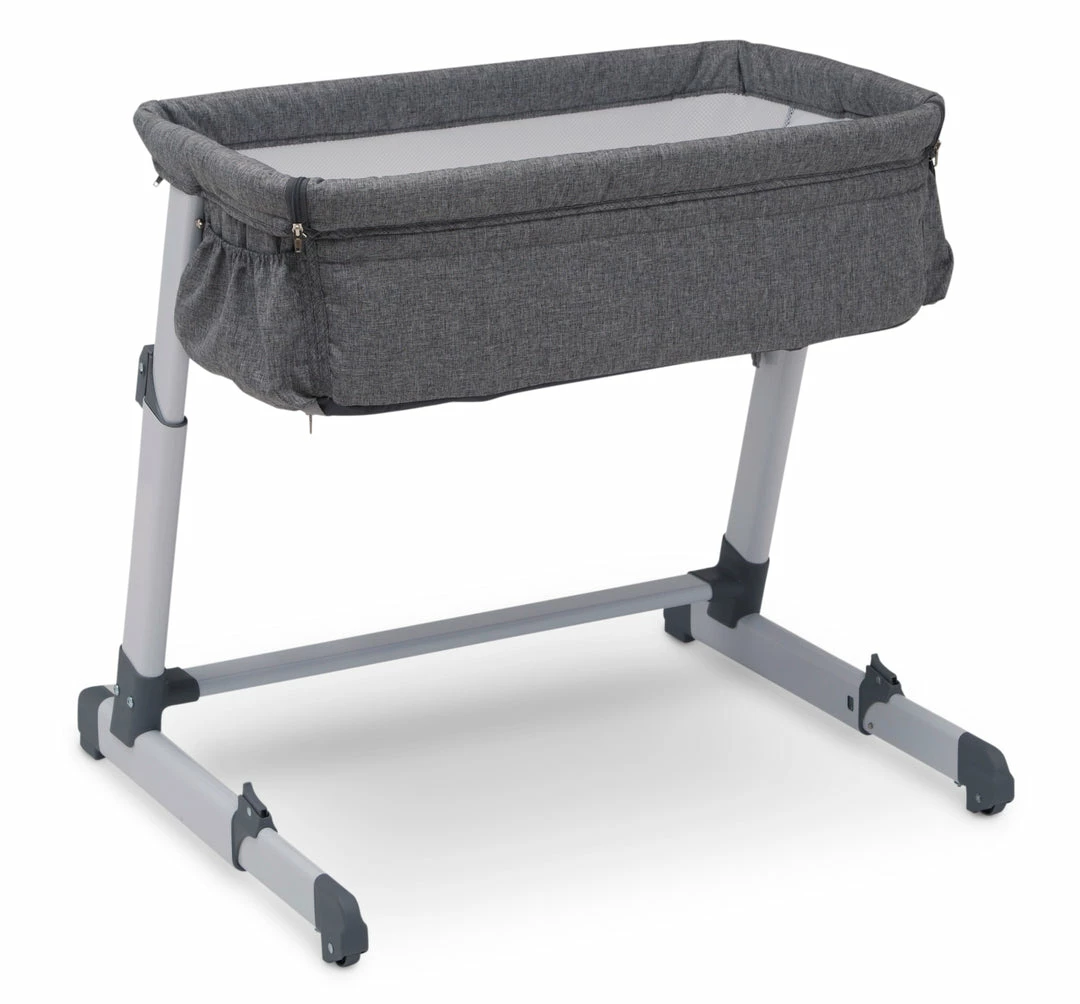 Keep your baby comfy and close by with the Dream Bedside Baby Bassinet by Simmons Kids. Its convertible design allows it to be used as a standalone bassinet or as bedside sleeper. When converted into a bedside sleeper, this bassinet provides the closeness and convenience of co-sleeping, while giving your baby their own protected space, plus it makes it easy to soothe and care for your baby, while still in bed. Simply unzip and unroll the side wall of the bassinet and use the included safety straps to securely attach the bassinet to your bed. The bassinet’s adjustable height ensures the perfect fit. Breathable mesh walls all around promote airflow and provide a clear view of your baby, so no matter how you use this bassinet, you’ll be able to safely keep an eye on your little one. This bassinet is recommended for babies 0-5 months. Max weight 30 lbs. Stop use at 5 months or once your infant begins to push up on their hands and knees, whichever comes first. Bassinet includes bedside safety straps, mattress pad and fitted sheet.