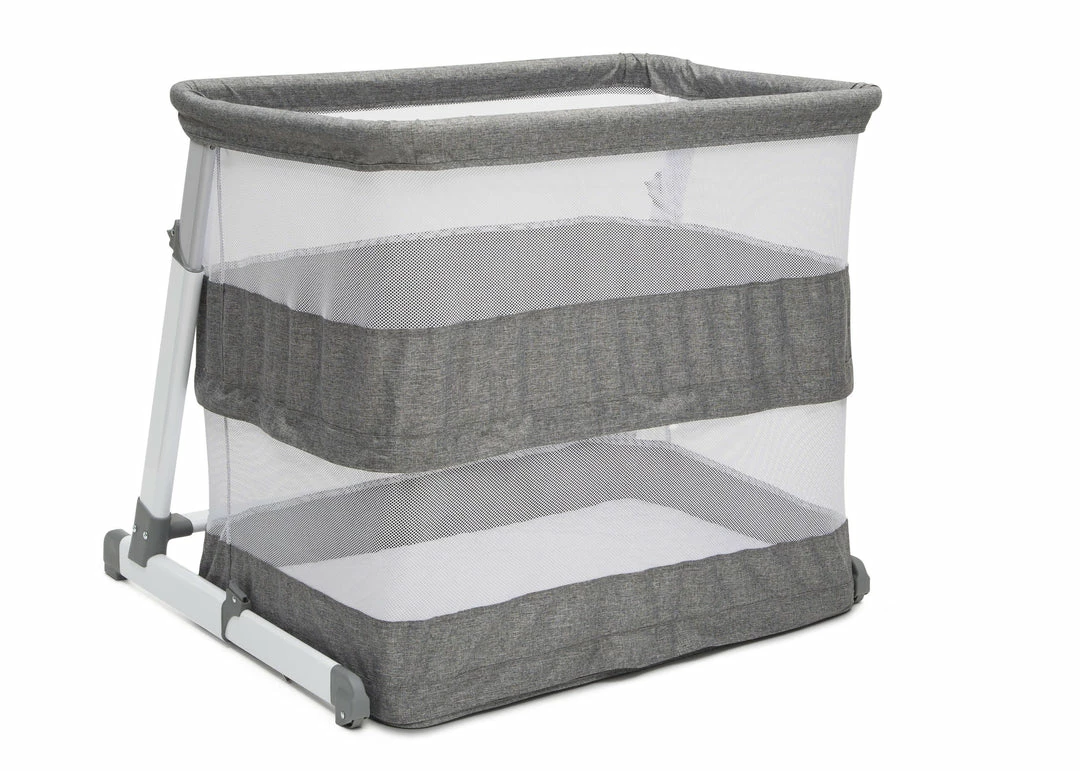 The Room2Grow Convertible Bassinet/Sleeper; For Babies up to 1 Year! from Simmons Kids® is there for your baby as they grow. Making it extremely easy and safe to room share with your little one from birth to 12 months, this newborn bassinet and infant sleeper combo features two stages that allow you to lower the unit as your baby matures. Use the bassinet mode for newborns (up to 15 lbs.) In the bassinet stage you can easily adjust the height so your baby is close by and within reach, which makes it easier than ever to soothe or feed your little one. For infants (up to 25 lbs.) use the sleeper mode. The sleeper mode allows you to lower the unit to the floor to ensure your growing baby has the safest sleep environment while still being near by. The included mattress pad offers a firm, comfortable surface to sleep on while mesh sides provide a clear view of Baby and help air circulate. A must-have for new parents, the Room2Grow Convertible Bassinet/Sleeper; For Babies up to 1 Year! helps make the first year with your baby stress-free by providing a safe room-sharing option for your family. The removable mattress cover is machine washable for easy cleanup.